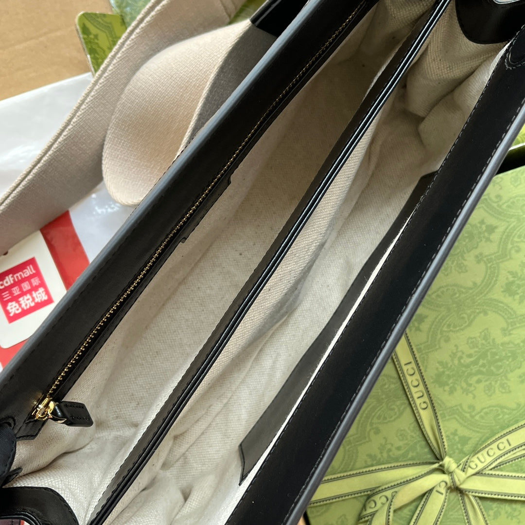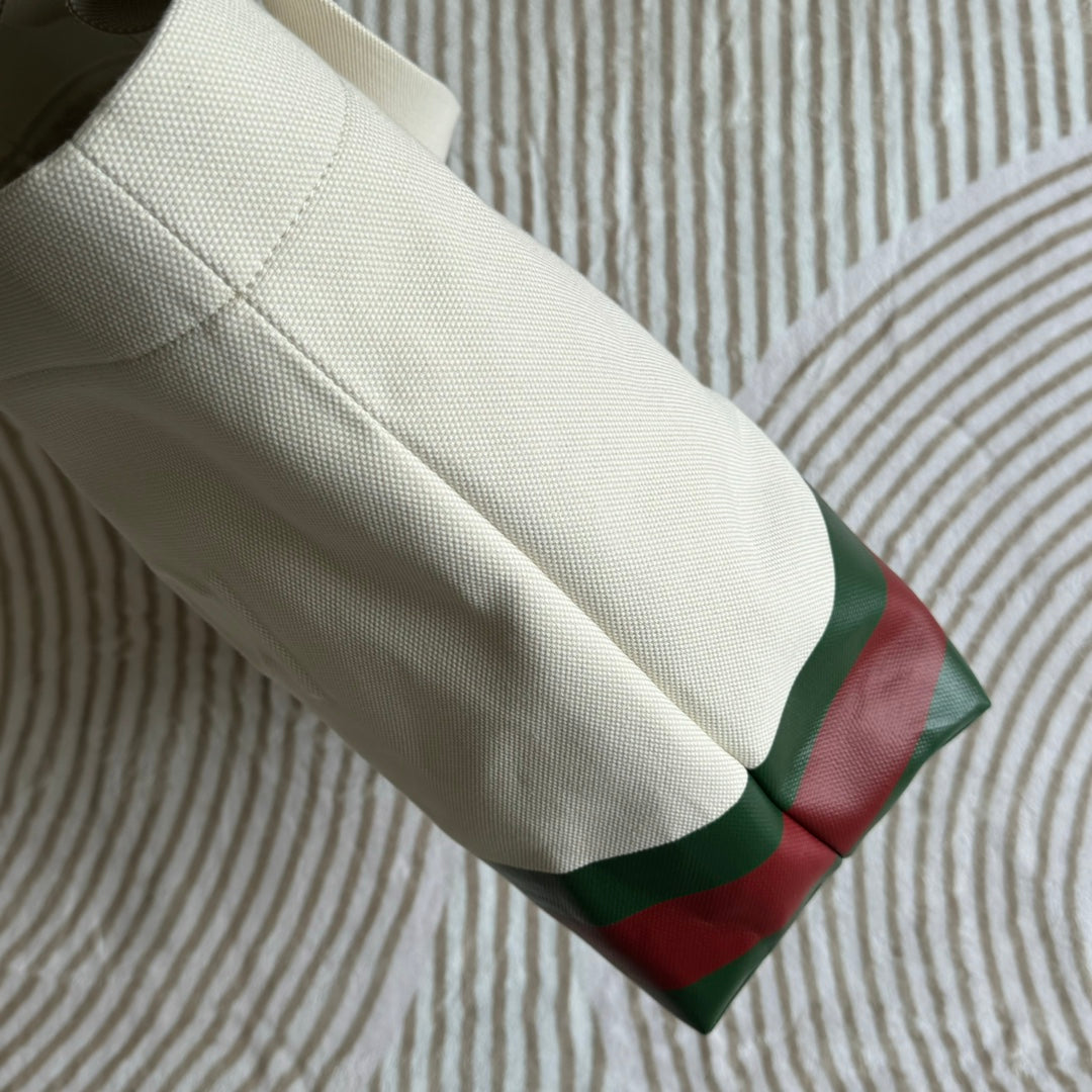 GGxADIDAS HORSEBIT 1955 TOTE BAG 20 WITH WEB STRAP IN WHITE MIX BLACK CALFSKIN GOLD HARDWARE