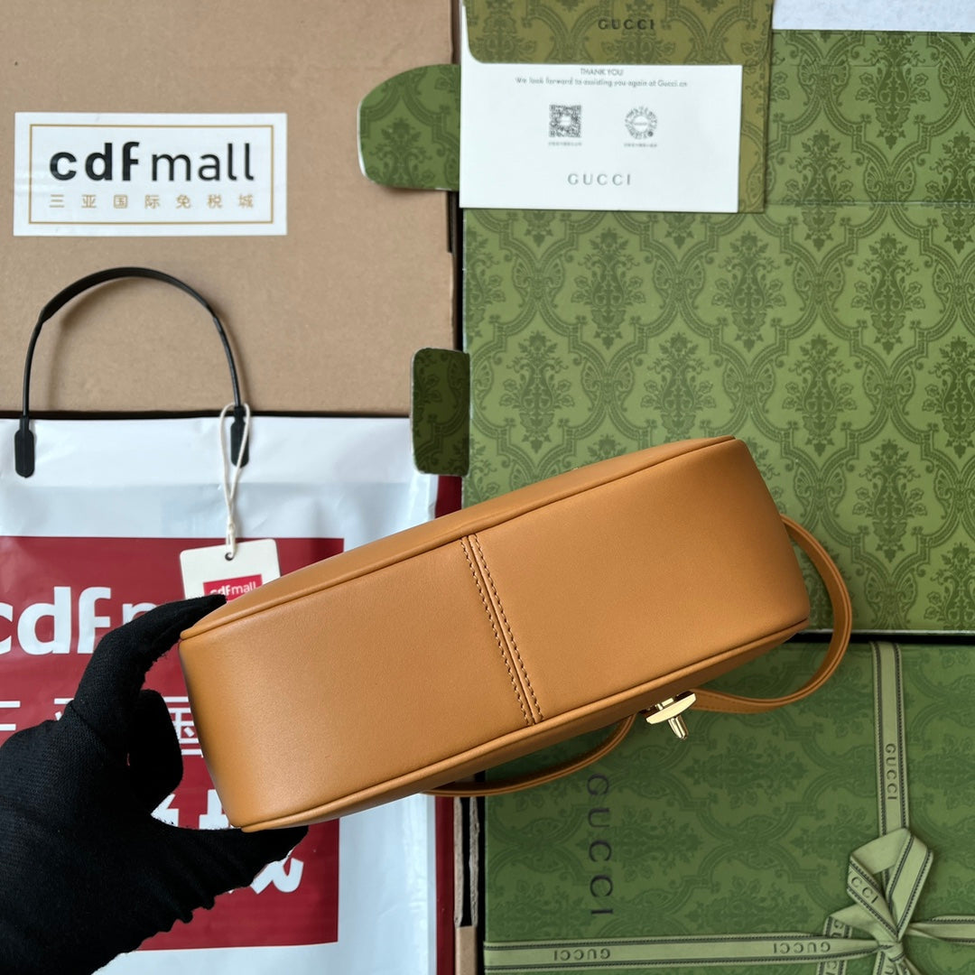MARMONT SHOULDER BAG 26 IN BLUE DENIM WITH DOUBLE G CRYSTAL PATTERN GOLD HARDWARE