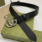 DOUBLE G SILVER BUCKLE 40MM BLACK LEATHER