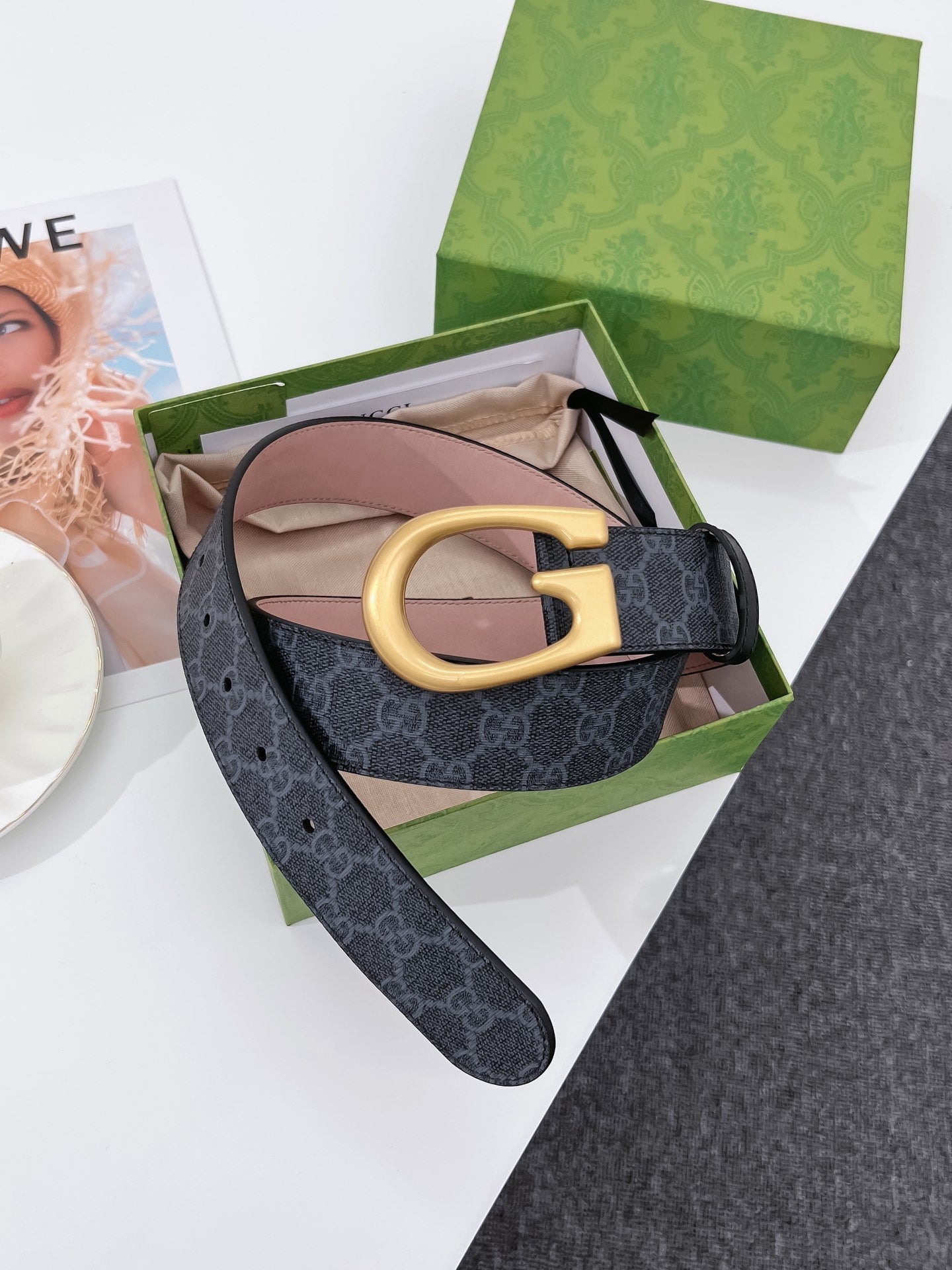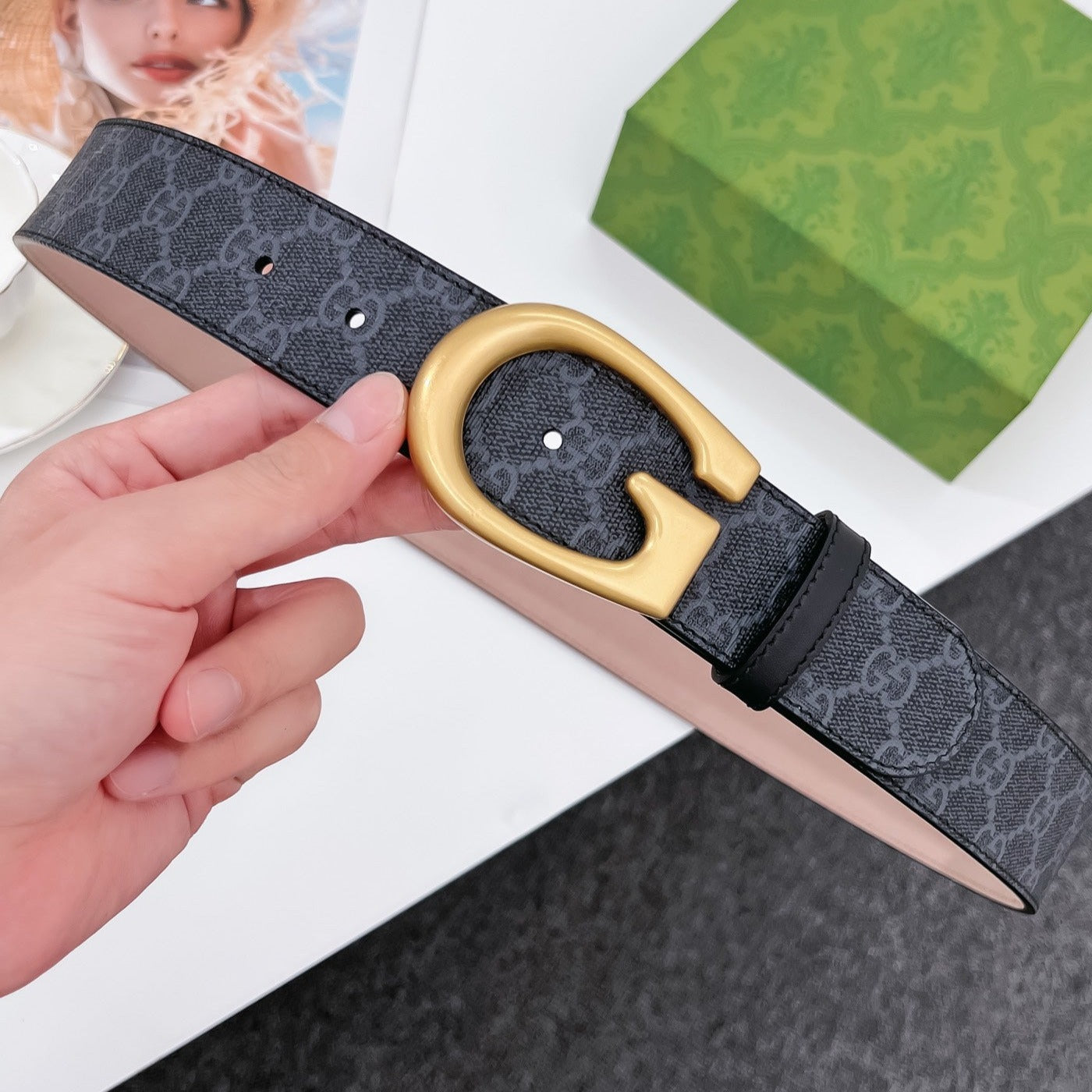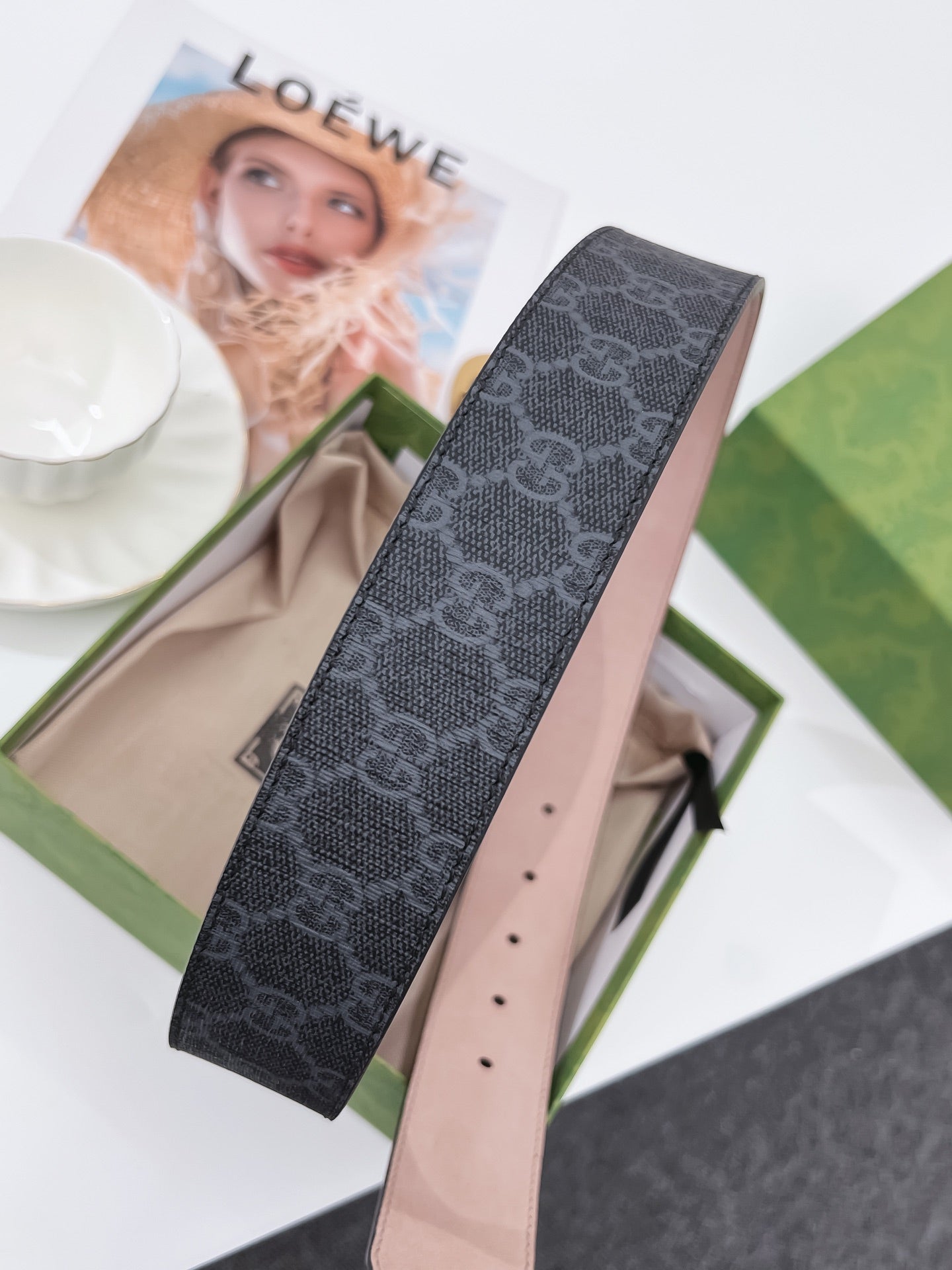 G BELT GOLD BUCKLE BLACK 40MM BEIGE CANVAS