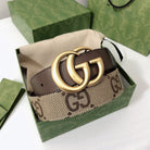 GG BELT 40MM GOLD BUCKLE BEIGE CANVAS