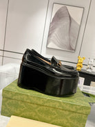 GG HORSEBIT PLATFORM LOAFER GLOSSY BLACK CALFSKIN