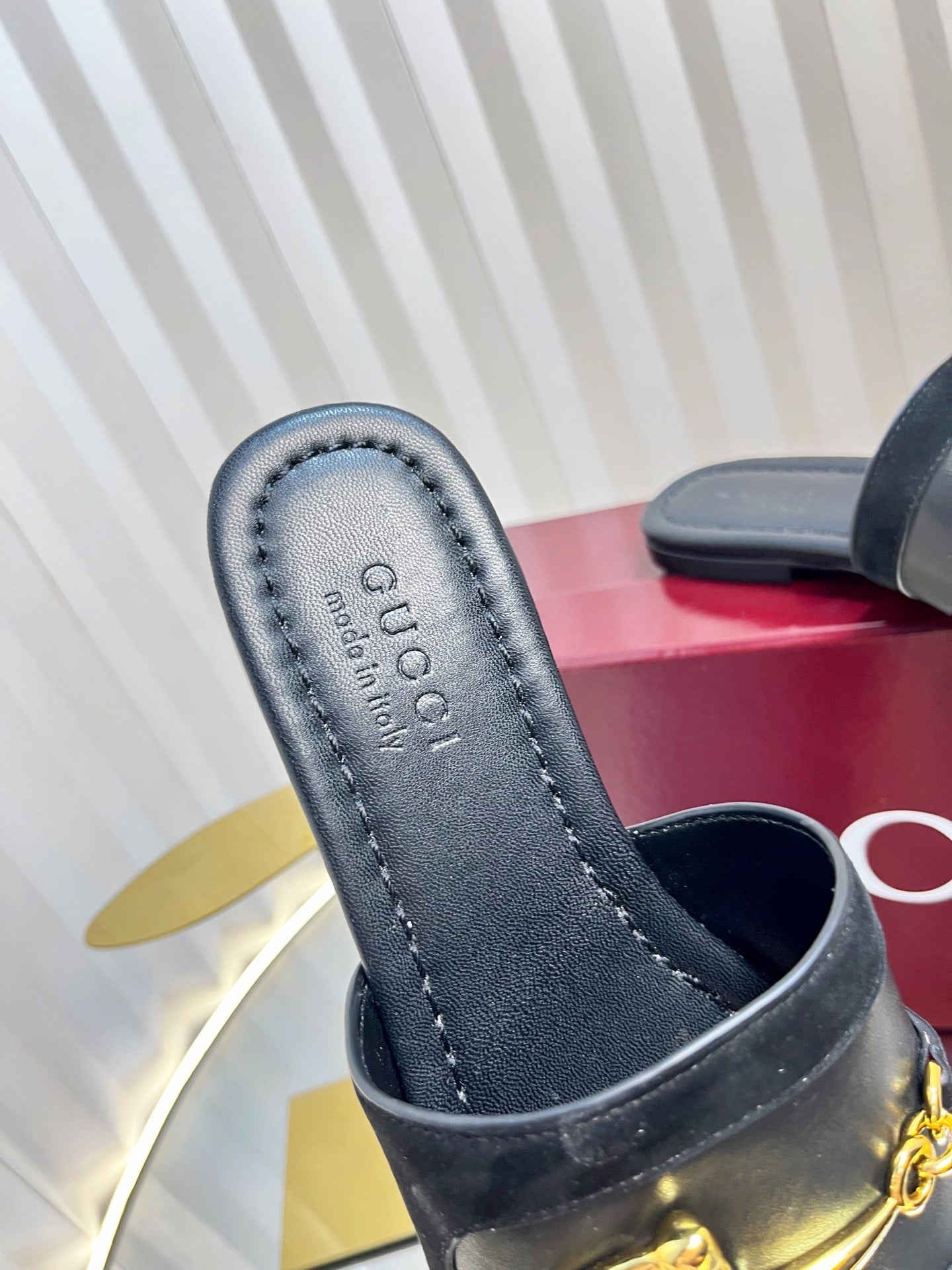 GC 25 Horsebit Sandals 10mm Black Suede Sheepskin 294652