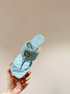 HIGH THONG MULE 55MM IN SKY BLUE CALFSKIN WITH GOLD HARDWARE