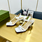 MEDIUM-HEEL SANDAL IN WHITE CALFSKIN WITH RHINSTONES