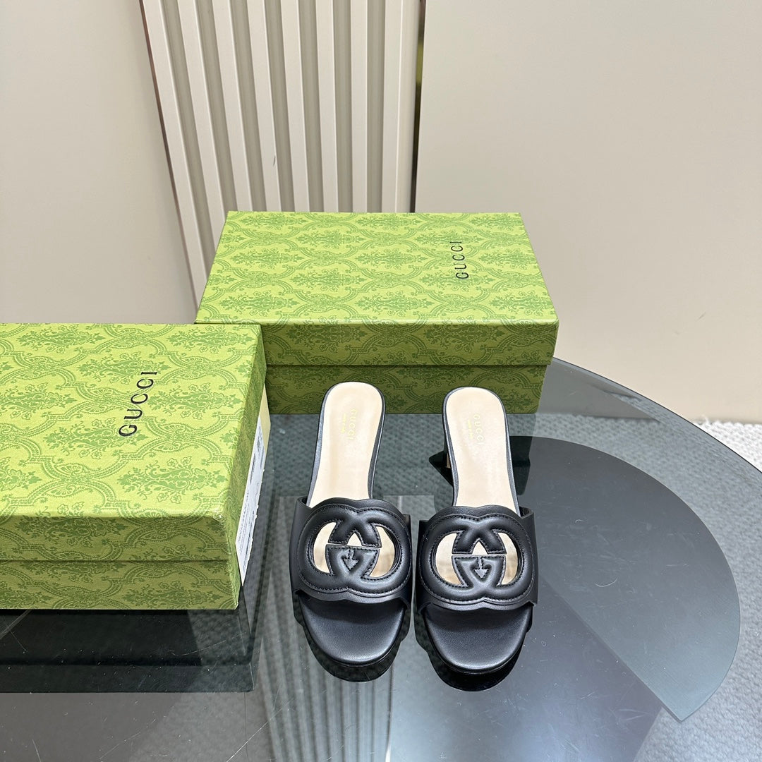 GG WEDGE PLATFORM IN BLACK CALFSKIN