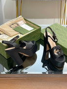 GG 120 INTERLOCKING G SANDAL BLACK CALFSKIN