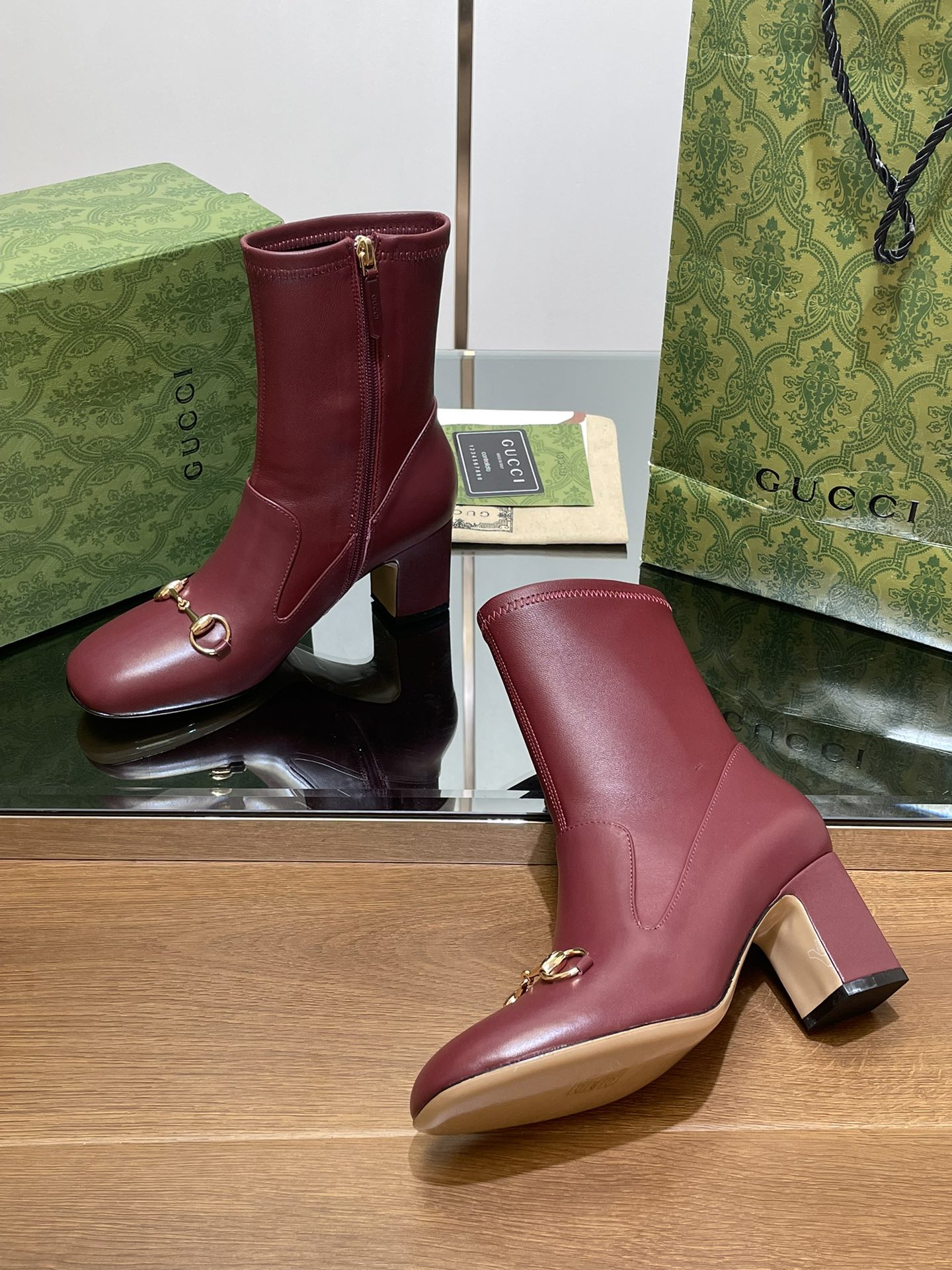 GG Horsebit Ankle Boot 65 Burgundy Calfskin