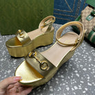 GG HORSEBIT FLATFORM SANDAL METALLIC GOLD CALFSKIN