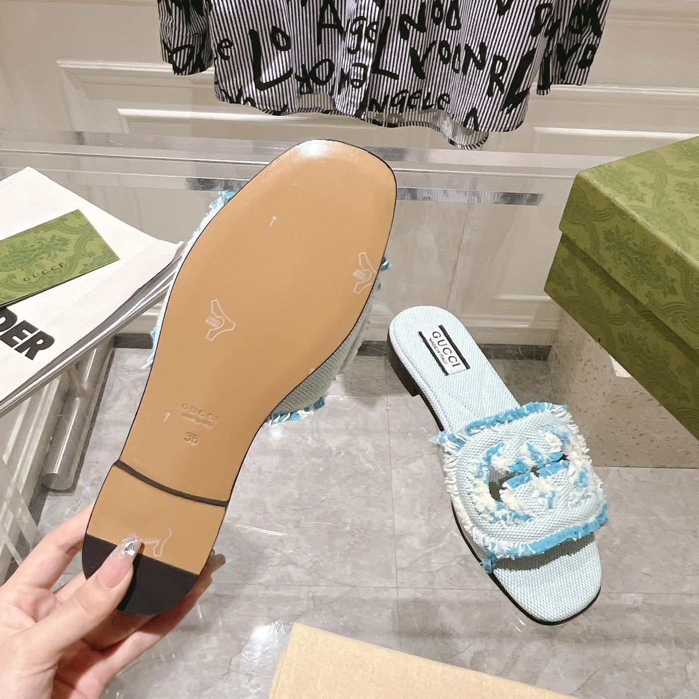 GG Interlocking double G hollow slippers Baby Blue