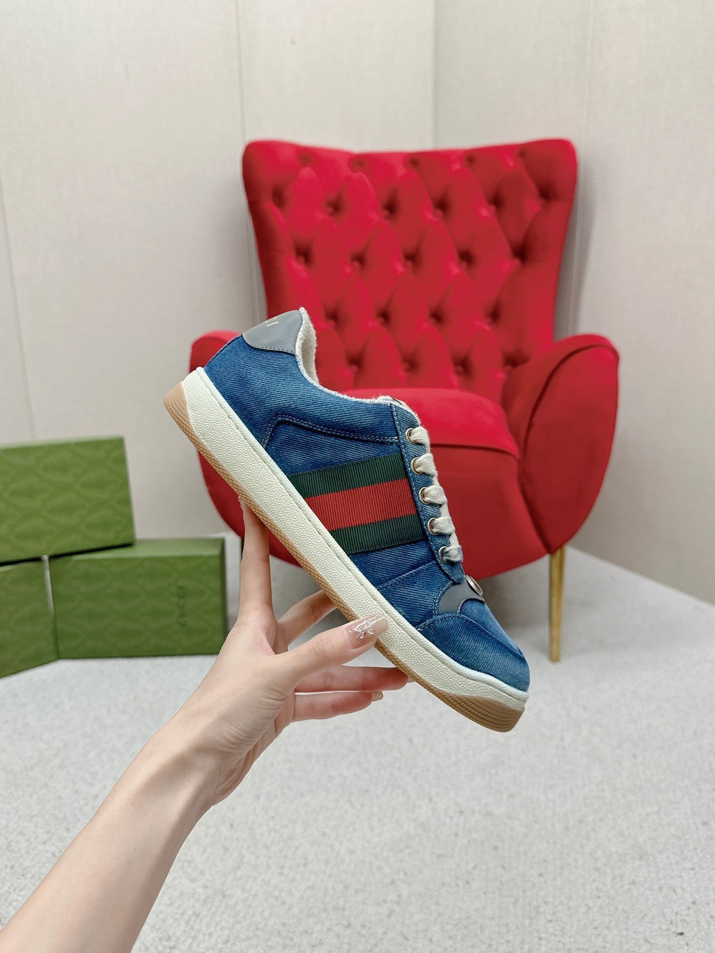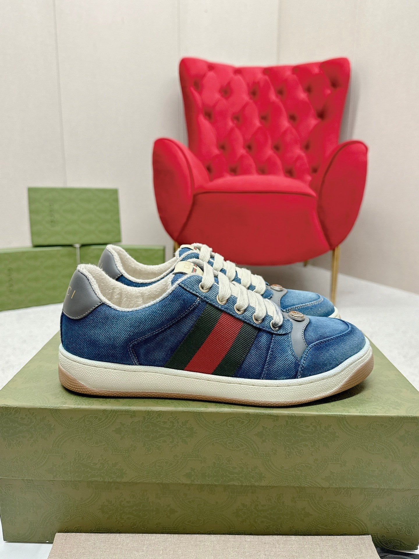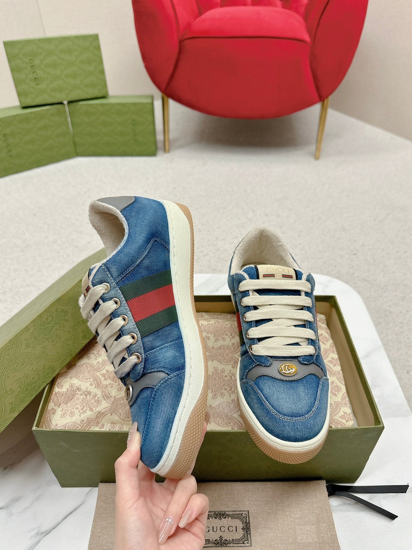 GG WOMEN'S SCREENER TRAINER AEGEAN CALFSKIN