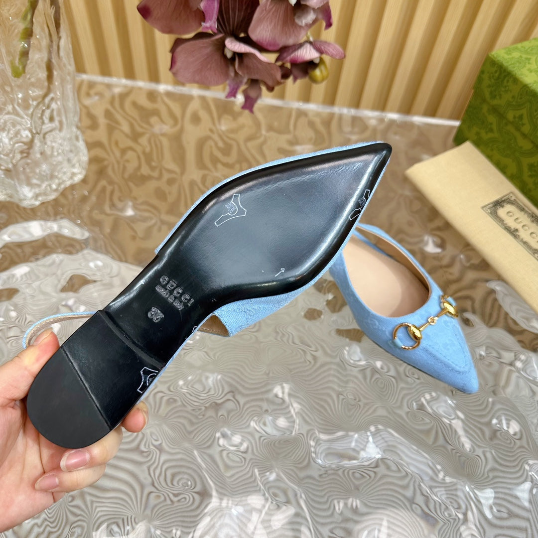 WOMEN'S SLIDE SANDAL WITH GG CROSS SKY CANVAS