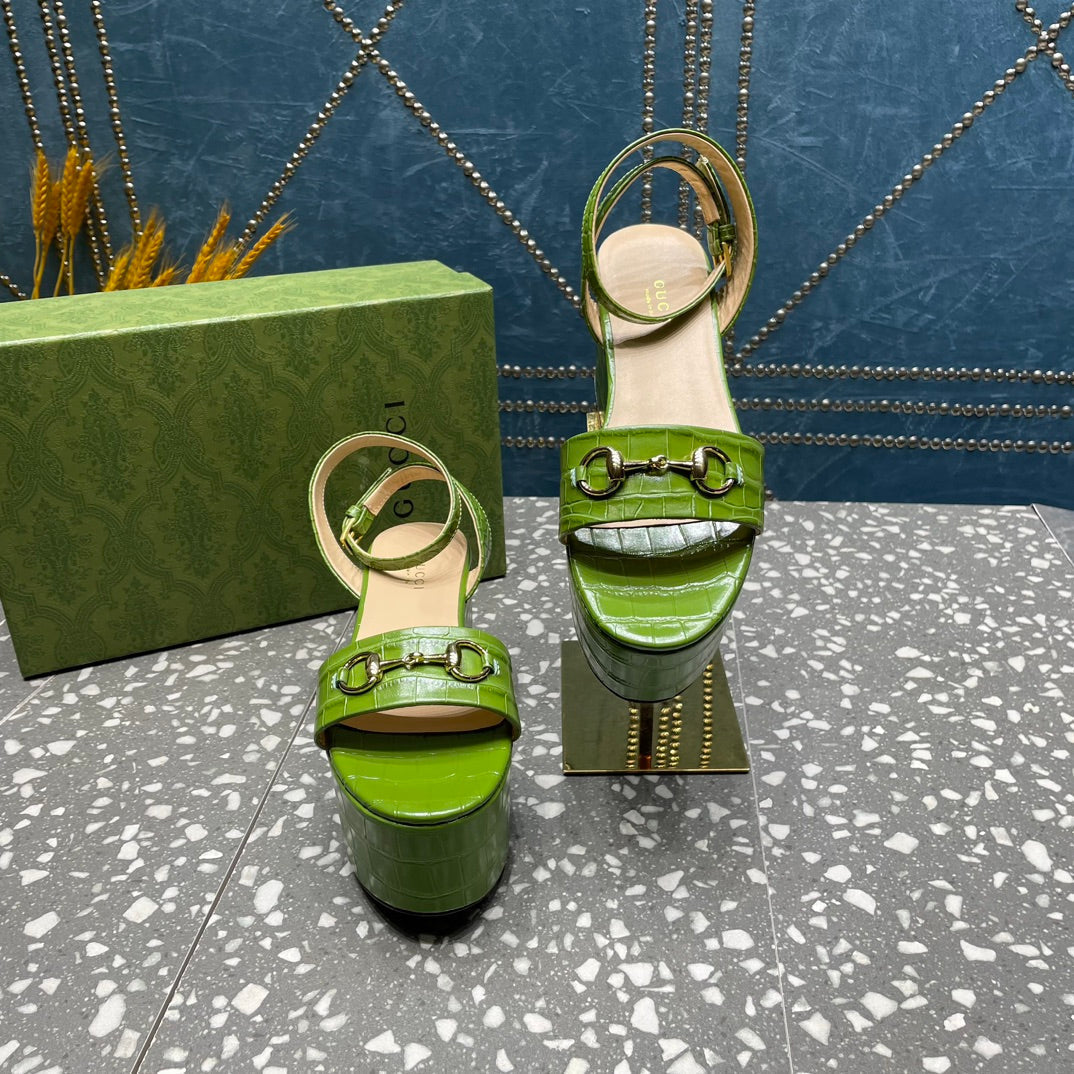 GG HORSEBIT FLATFORM SANDAL GREEN CALFSKIN