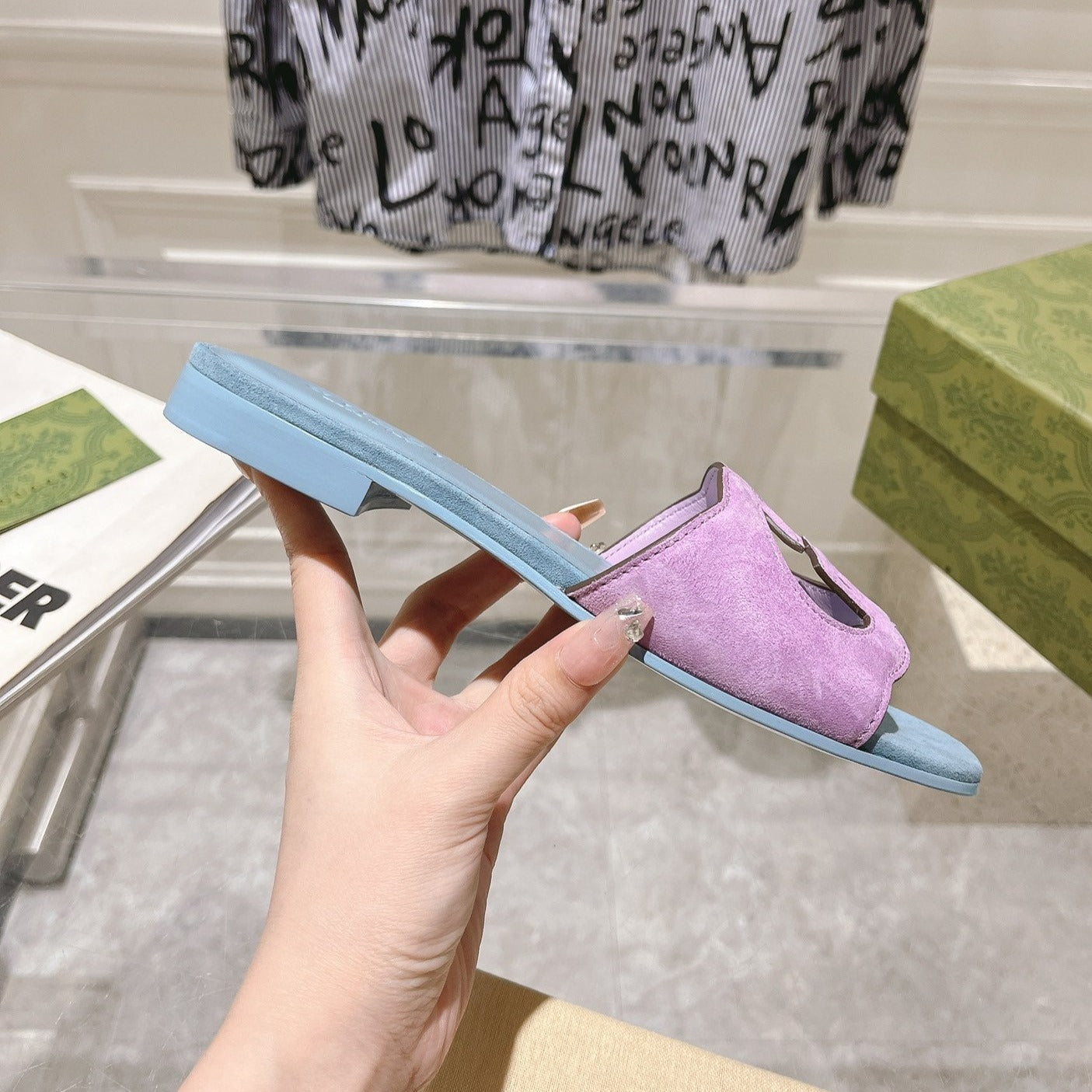 GG Interlocking double G hollow slippers Orchid Purple Blue