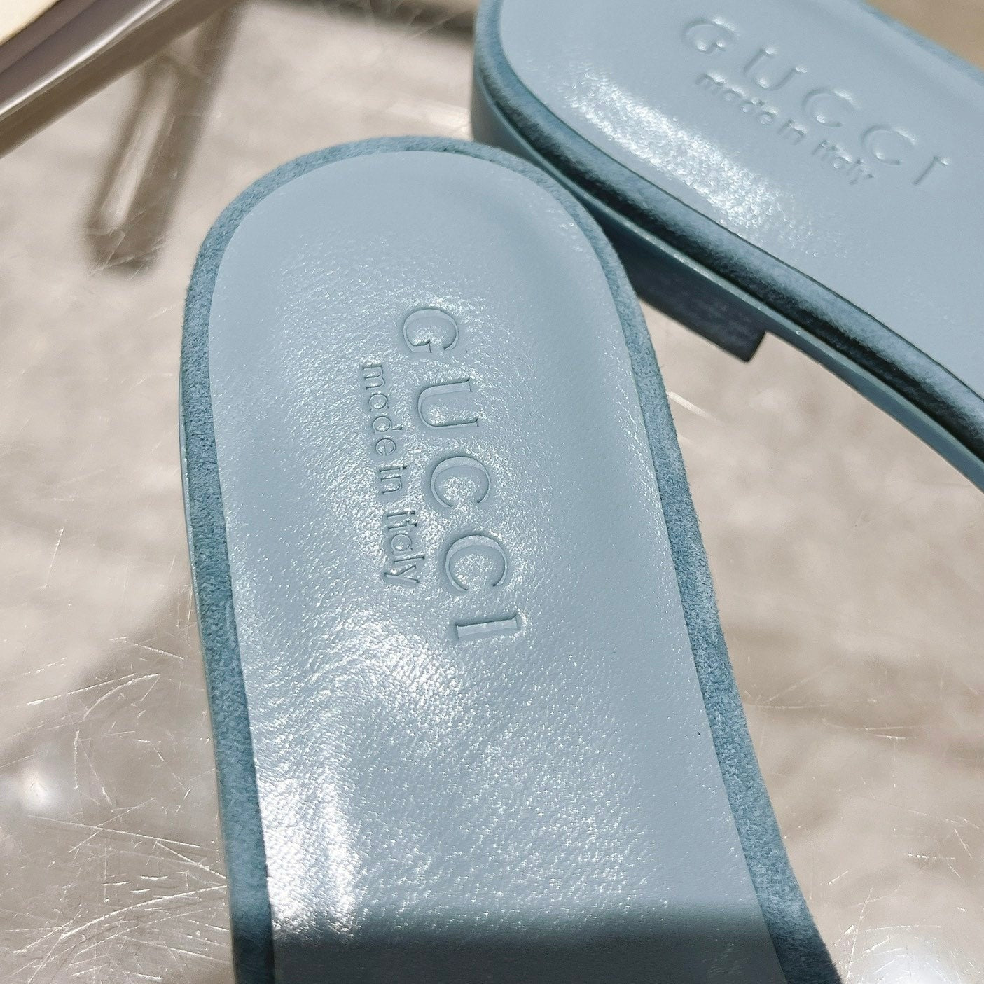 GG Interlocking double G hollow slippers Baby Blue