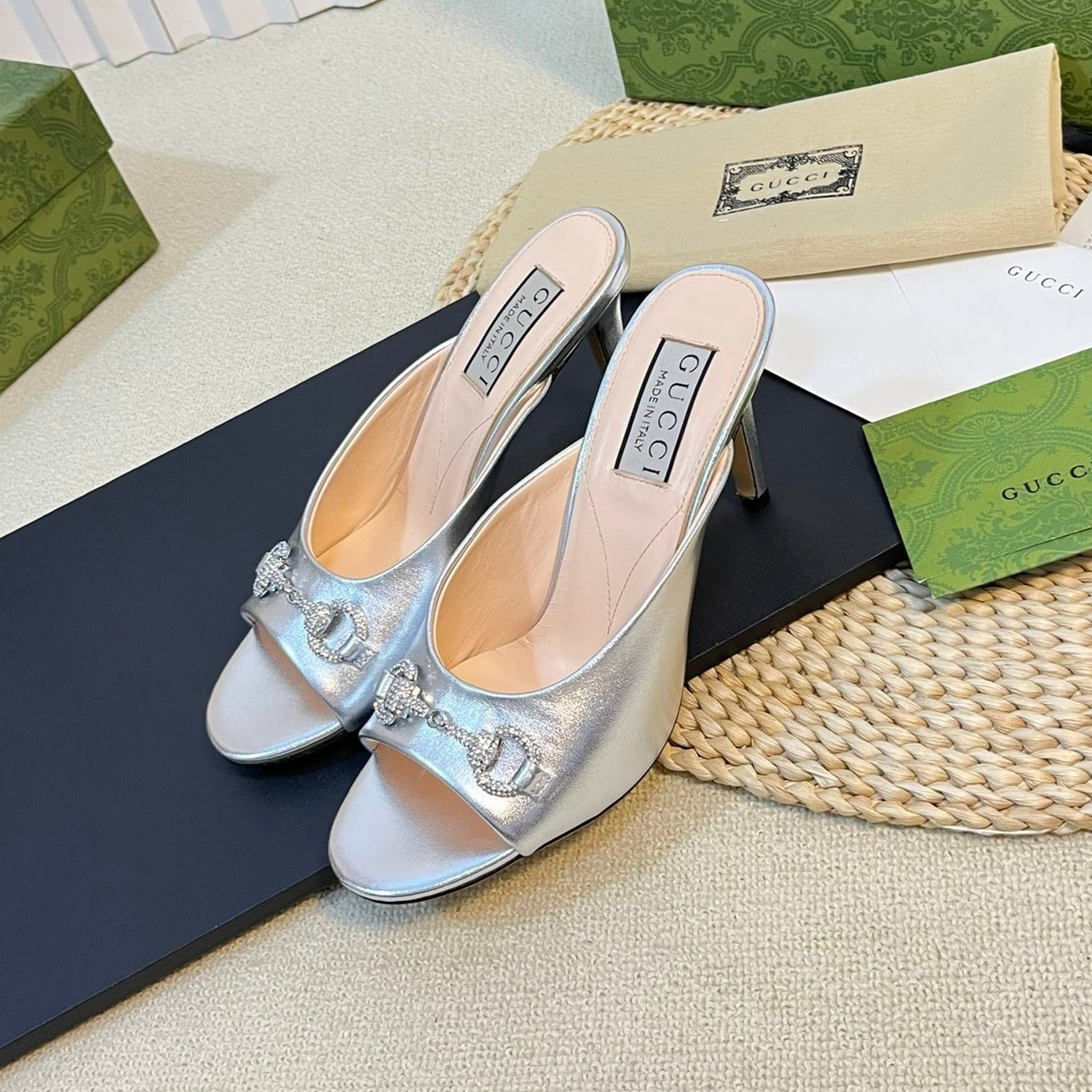 GG High Heels Half Slippers Black