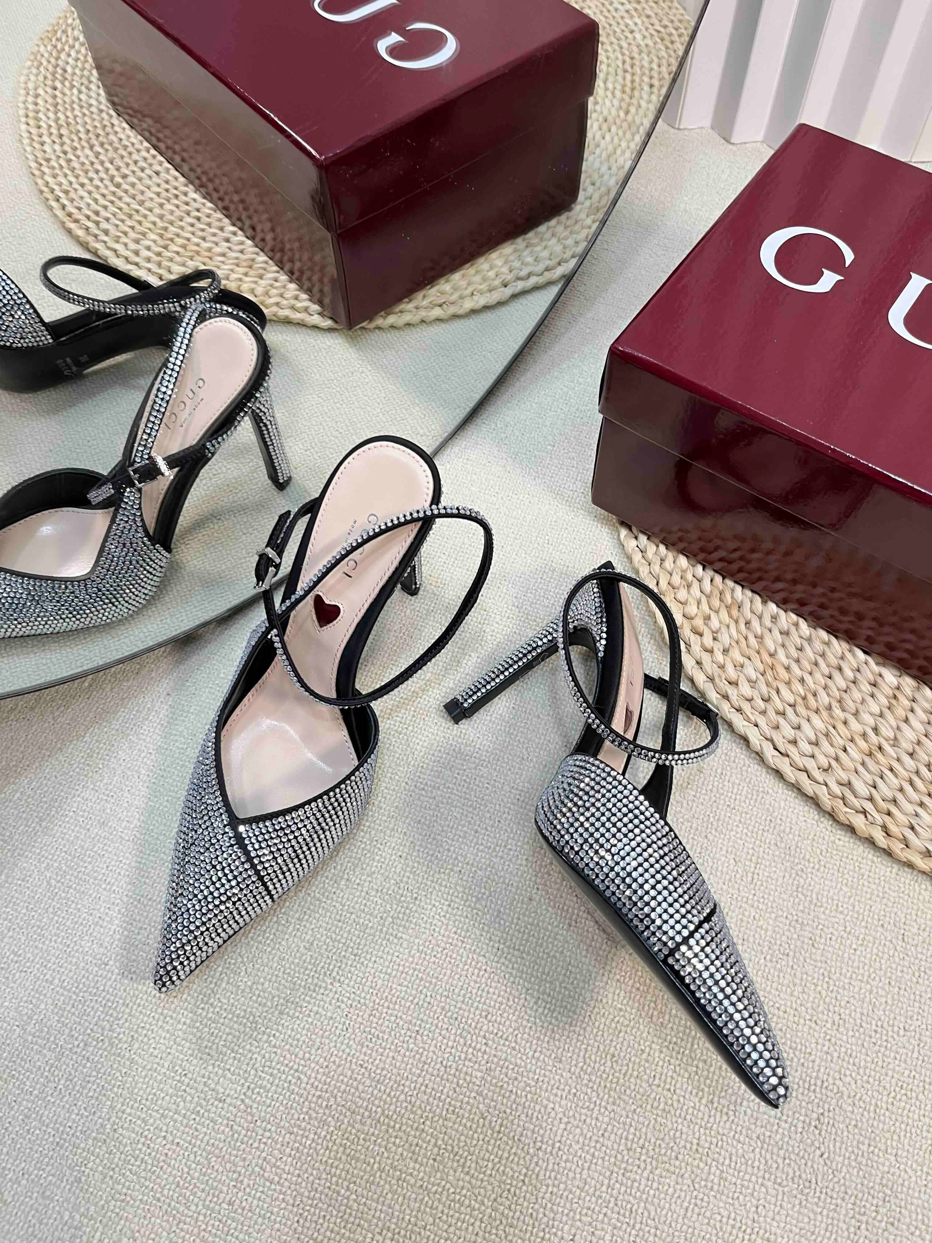 GC Crystal-Embellished Slingbacks Black Silk Sheepskin 294611
