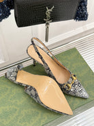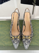 GG Horsebit Slingback 85MM Beige Black Monogram Canvas Point Toe Crystal-Embellished