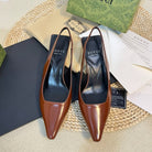 GG Women's G plain leather logo Slingbacks Gingerbread brown