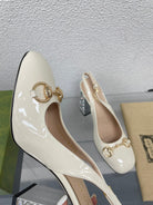 GG WOMEN'S HORSEBIT SLINGBACK 95MM IN WHITE CALFSKIN WITH RHINSTONES