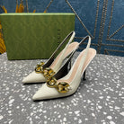 WOMEN'S SLINGBACK 10.5 CM IN WHITE CALFSKIN WITH GOLD HARDWARE
