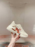 GG RHYTON LOGO TRAINER WHITE CALFSKIN WITH TIGER MOTIF