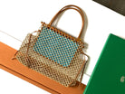 • Material: Woven raffia and calfskin