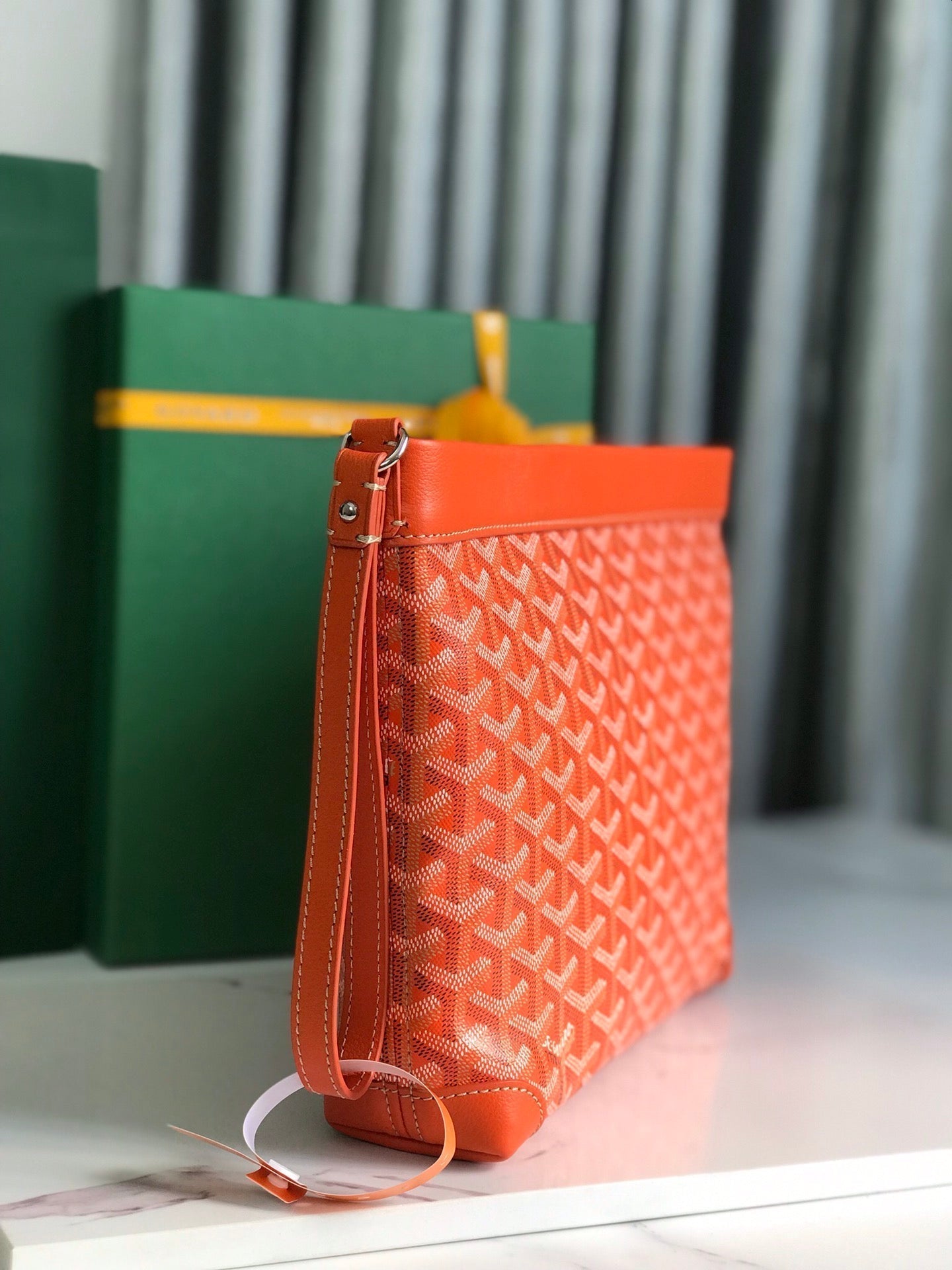 CONTI POUCH 24 IN ORANGE LAMBSKIN AND GOYARDINE CANVAS