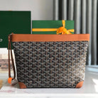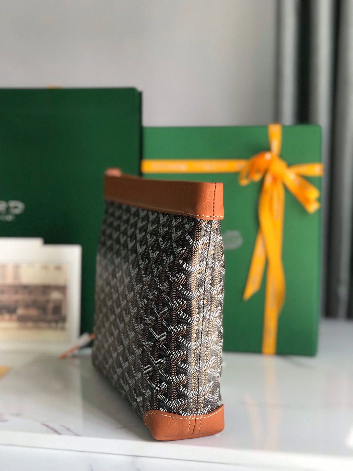 CONTI POUCH 24 IN TAN LAMBSKIN AND BLACK GOYARDINE CANVAS