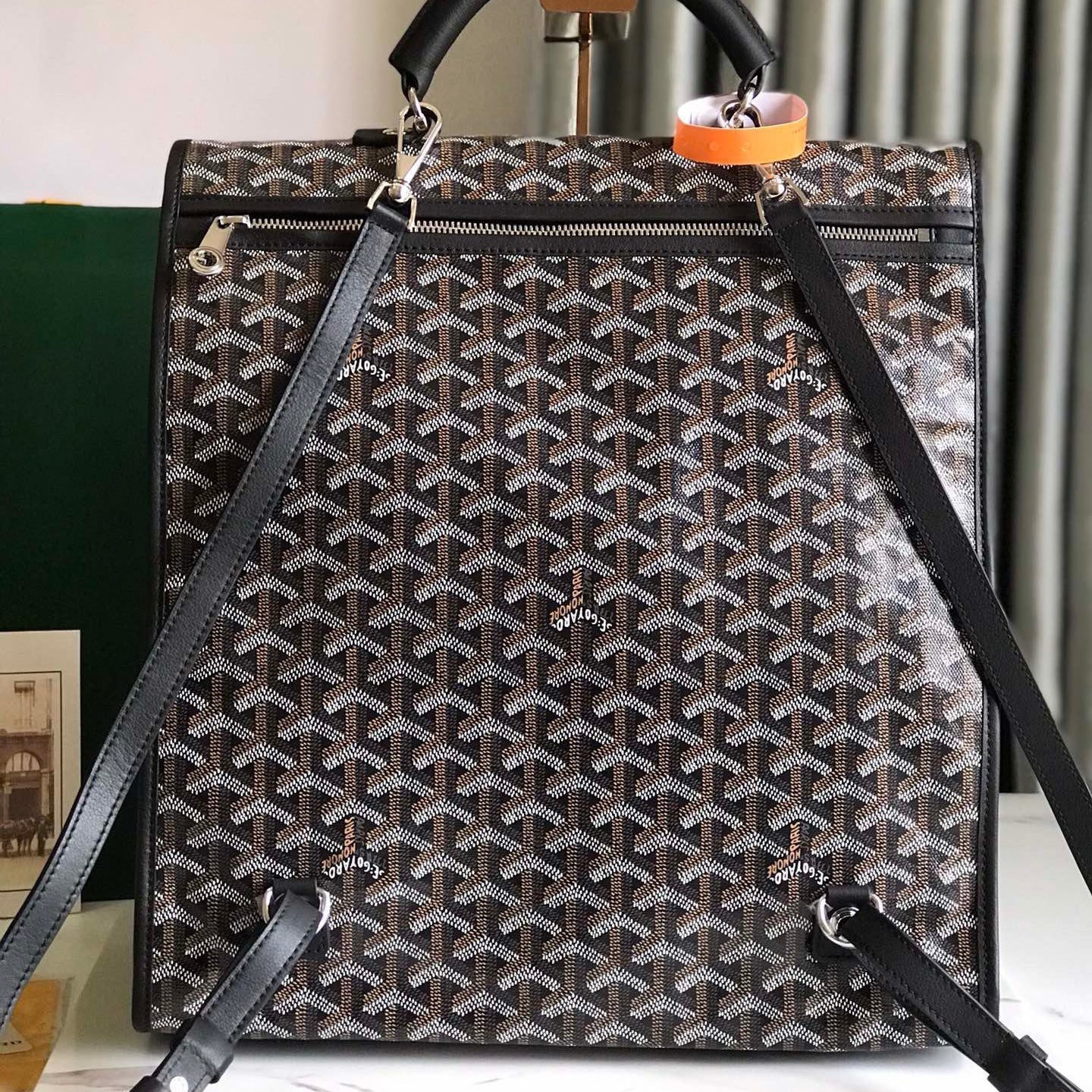 SAINT LÉGER BACKPACK 35 IN BLACK GOYARDINE CANVAS AND CALFSKIN WITH CARTOON PATCH