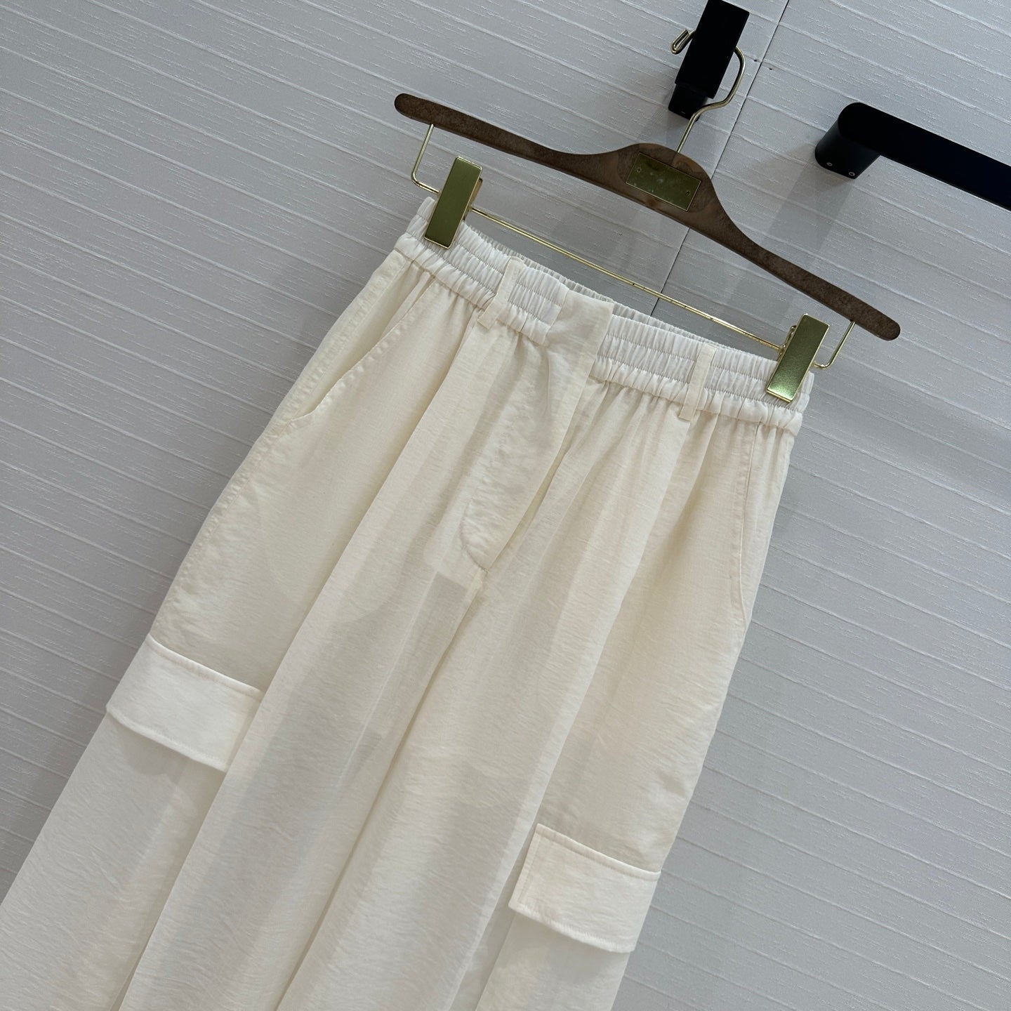 Gucci 25 Wide-leg Casual Pants Ivory Cotton