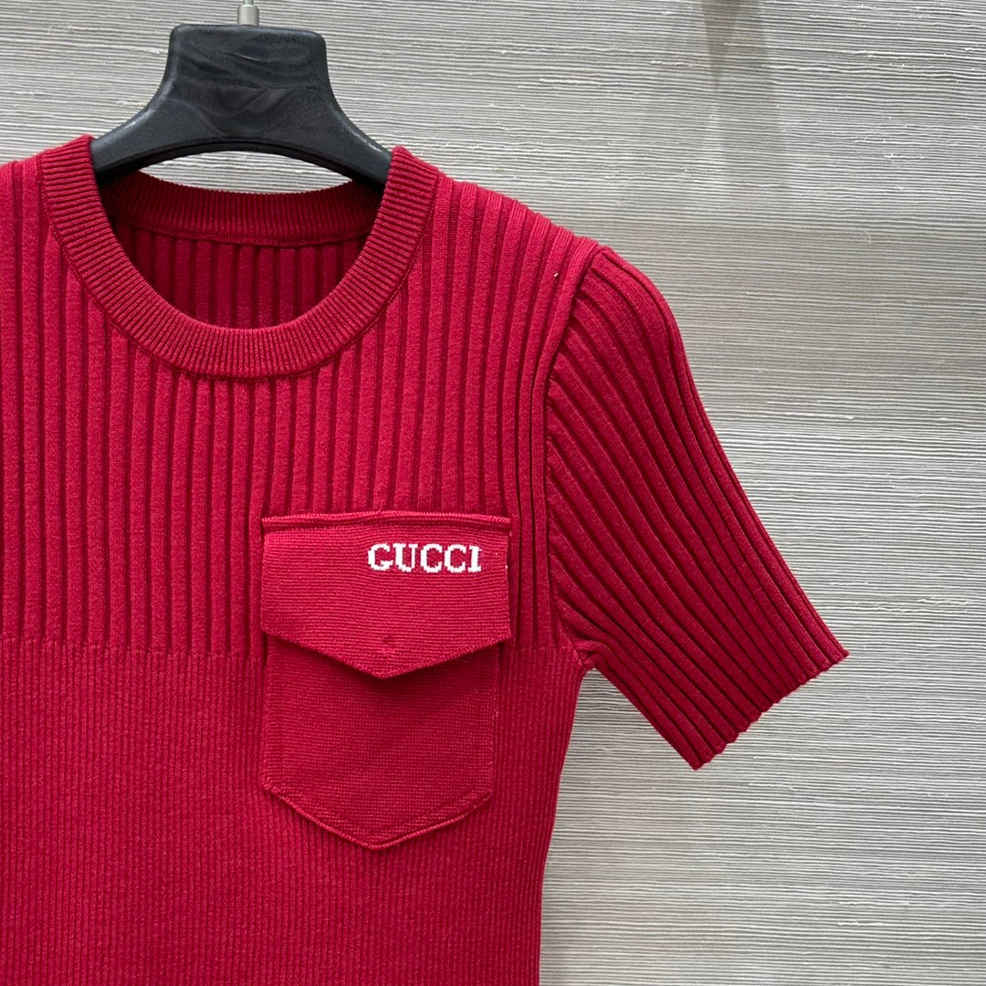 Gucci 25 Three-dimensional Embossed Letter Short-sleeved Top Red Cotton