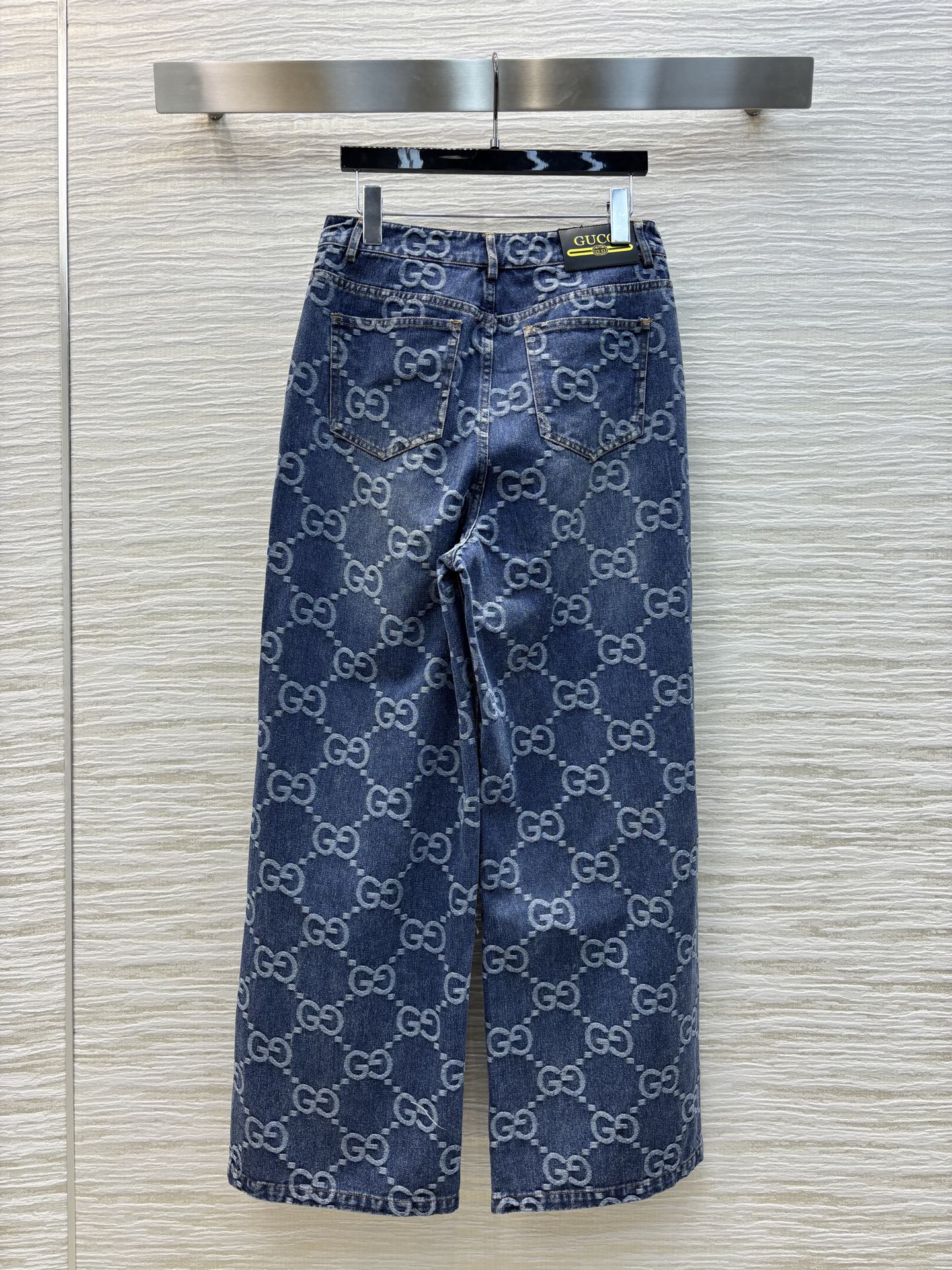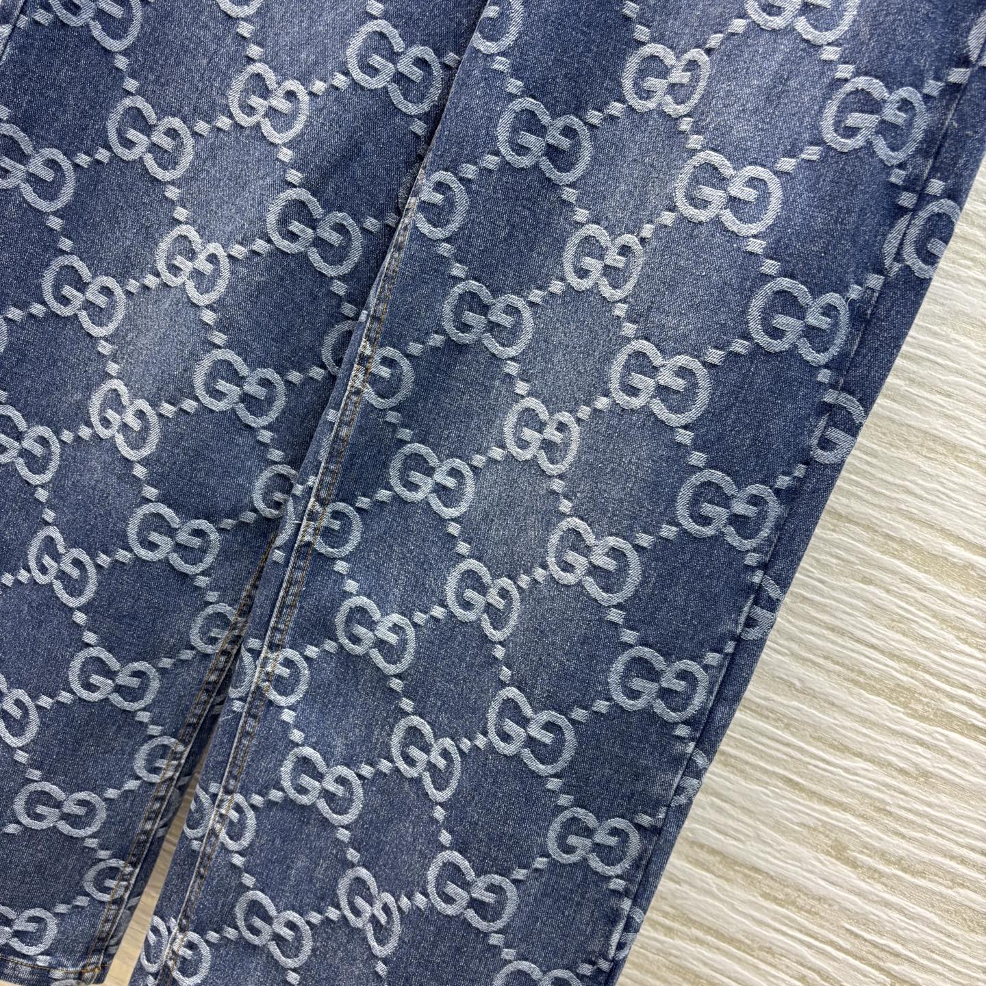 Gucci 2025 Logo Jacquard Straight Jeans Blue Cotton