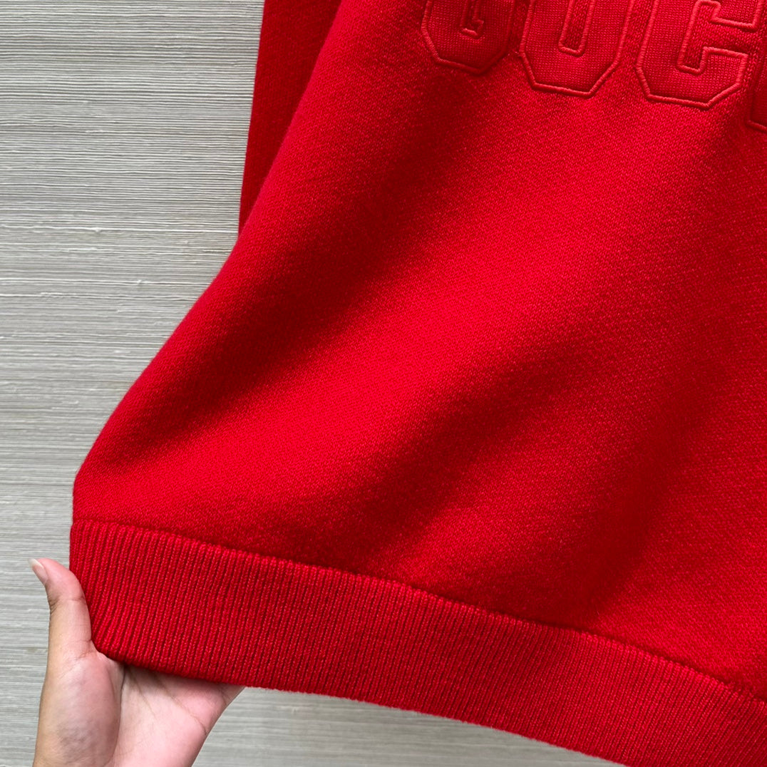 Gucci 25 Embroidered Pullover Sweater Red Wool