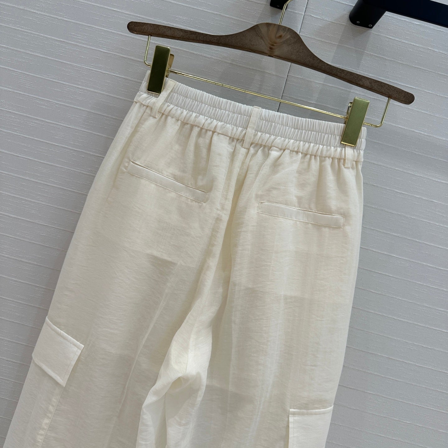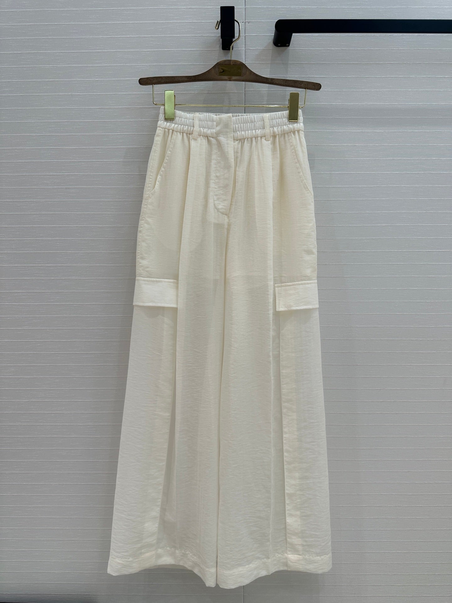 Gucci 25 Wide-leg Casual Pants Ivory Cotton