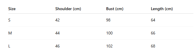 - Size: S, M, L