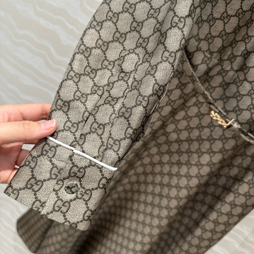 Gucci 25 Monogram Shirt Gray Silk