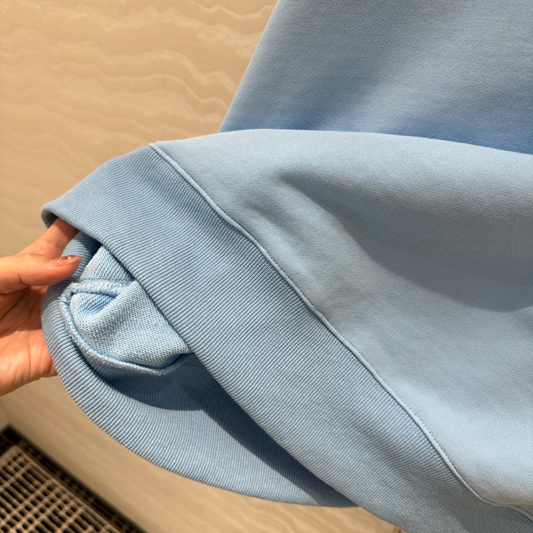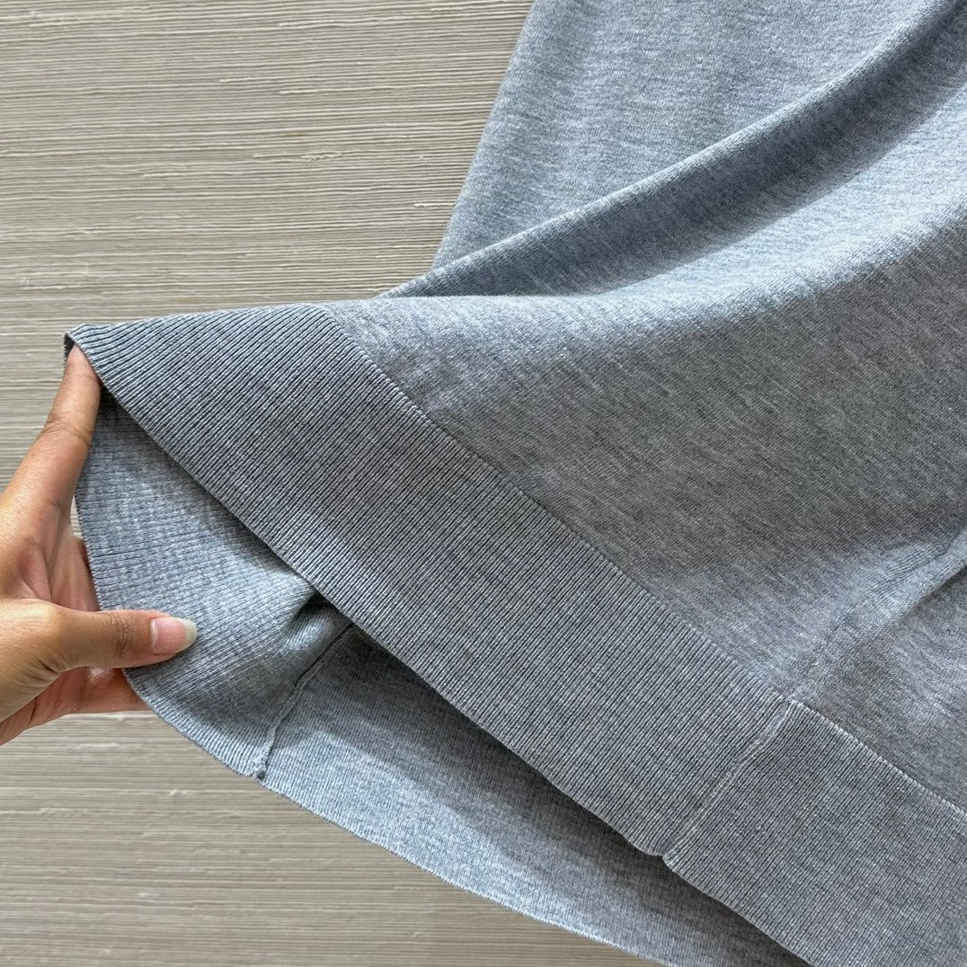 Gucci 2025 Knitted Round Neck Short-sleeved Top Blue Gray Cotton
