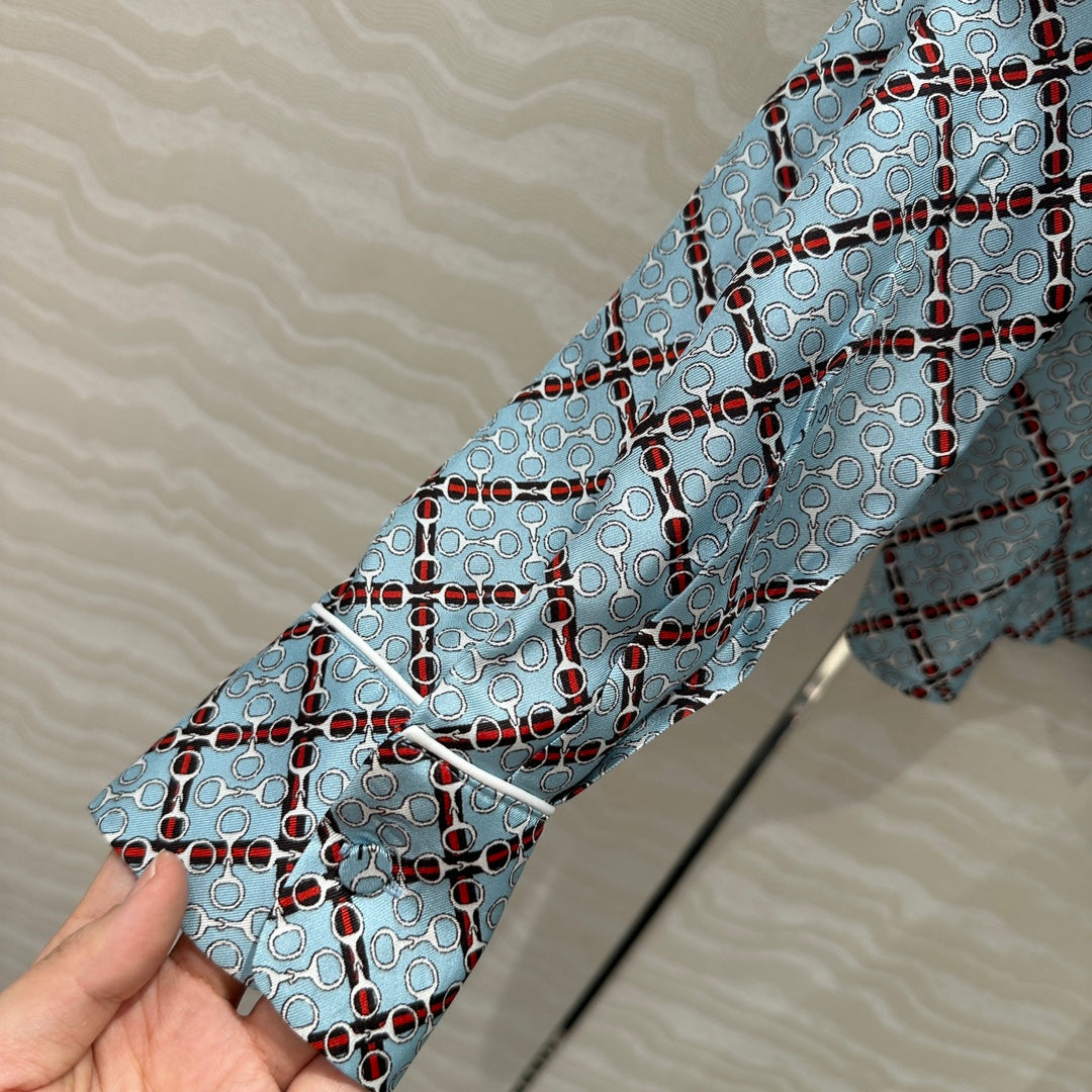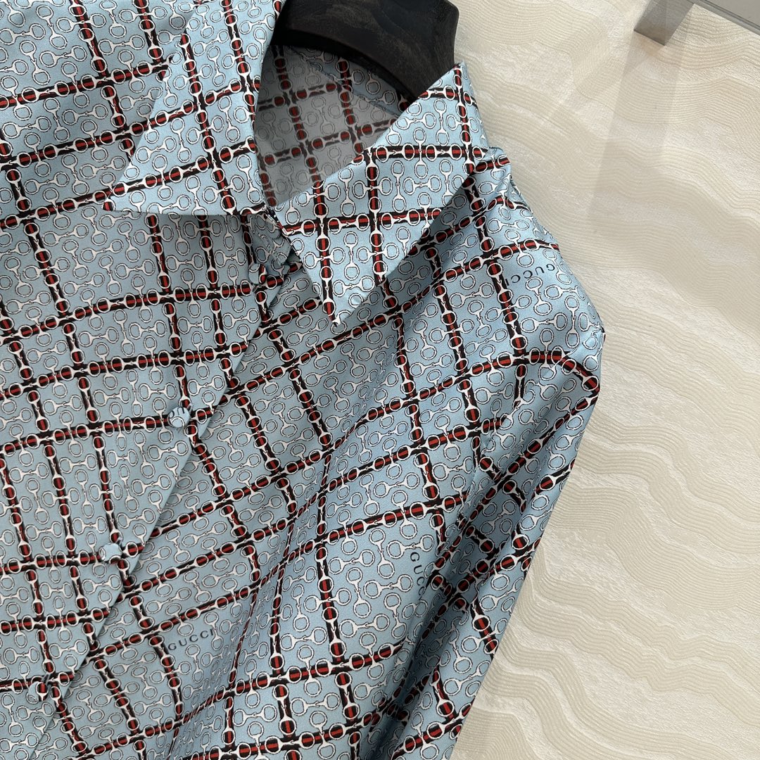 Gucci 25 Monogram Shirt Blue Red Silk