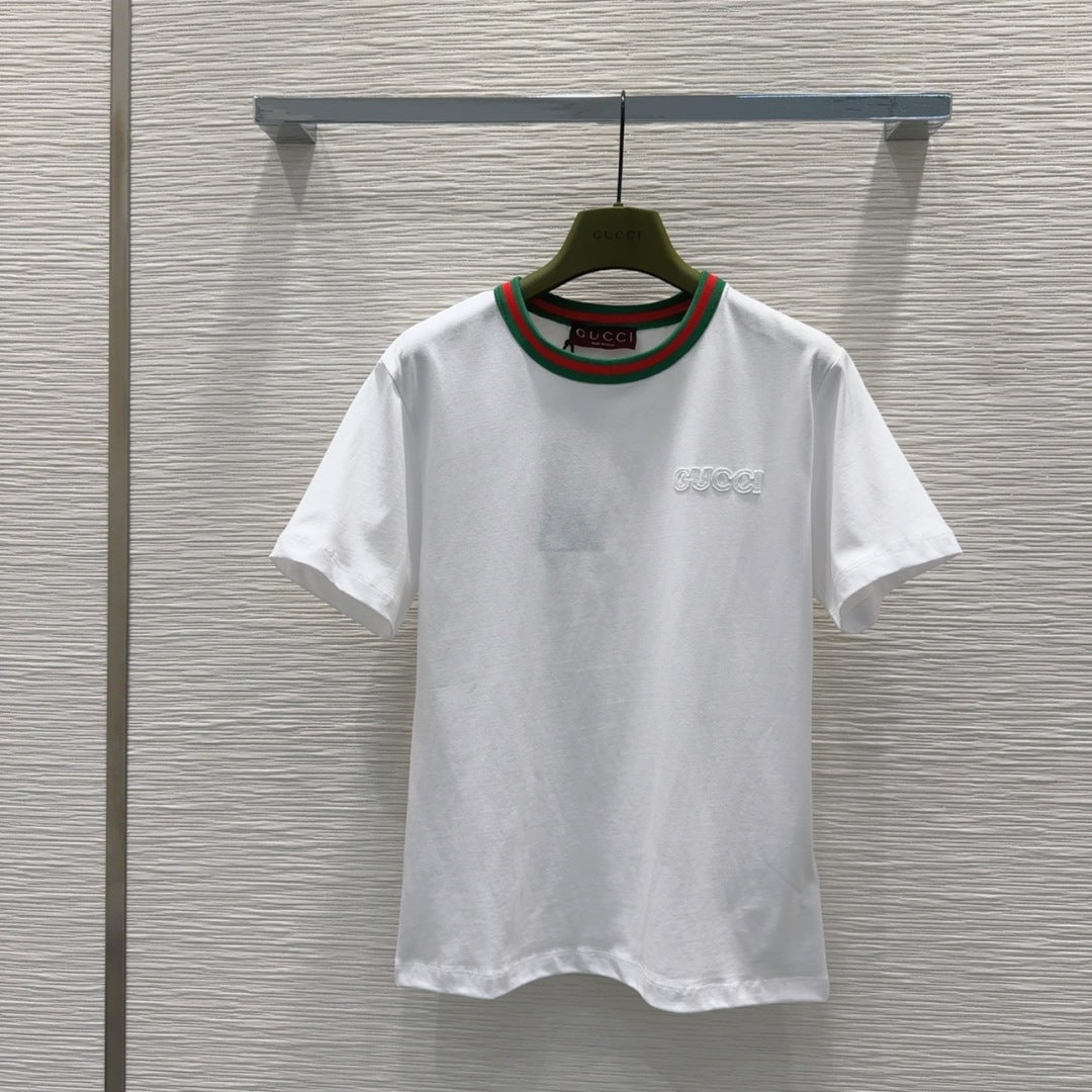 Gucci 2025 Embroidered Short-sleeved T-shirt Cotton 212086