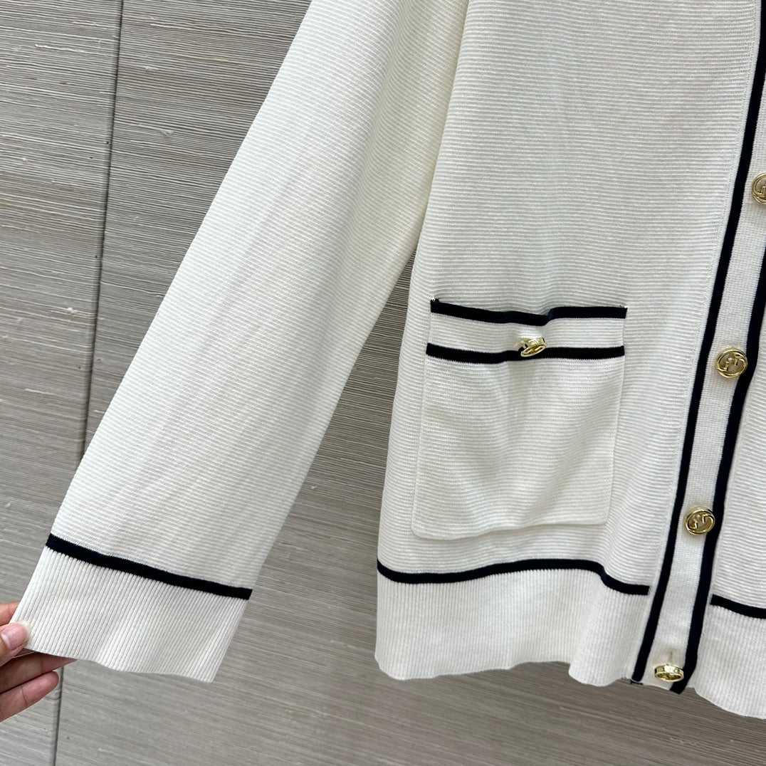 Gucci 25 V-neck Long Knitted Cardigan White Wool