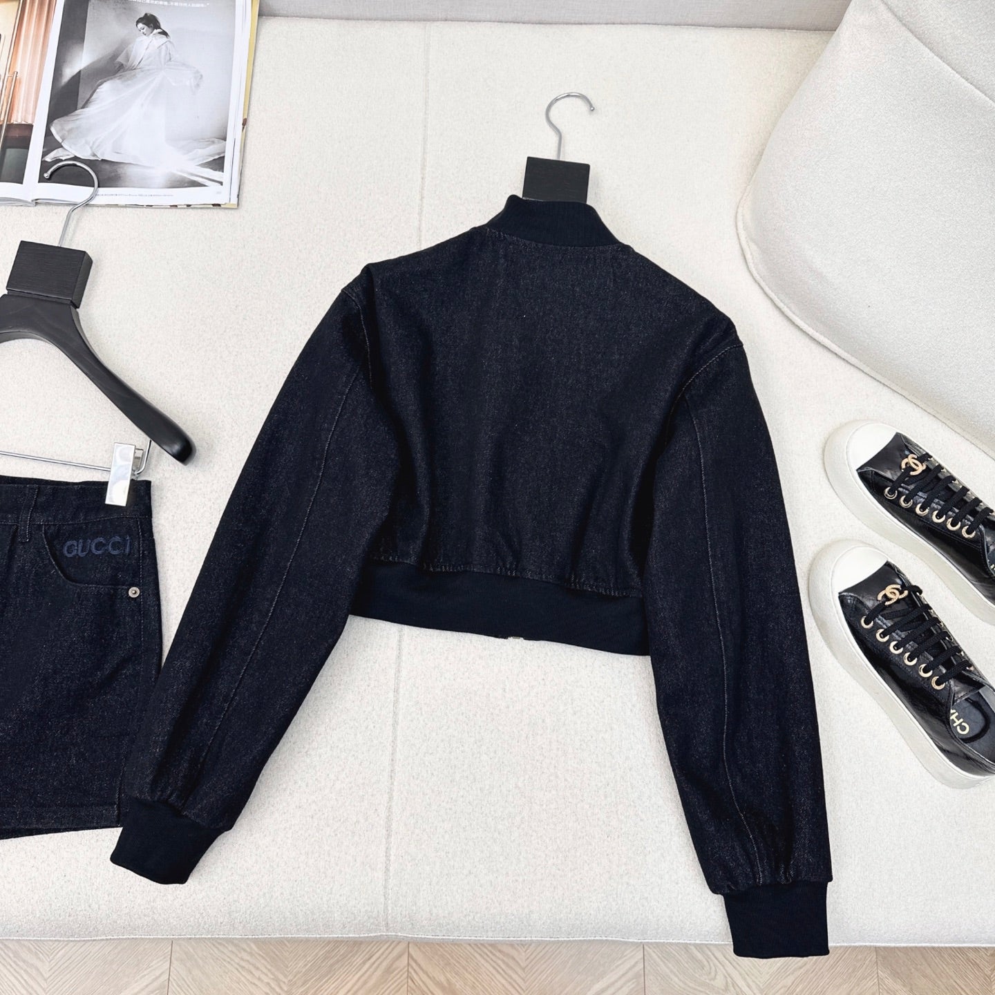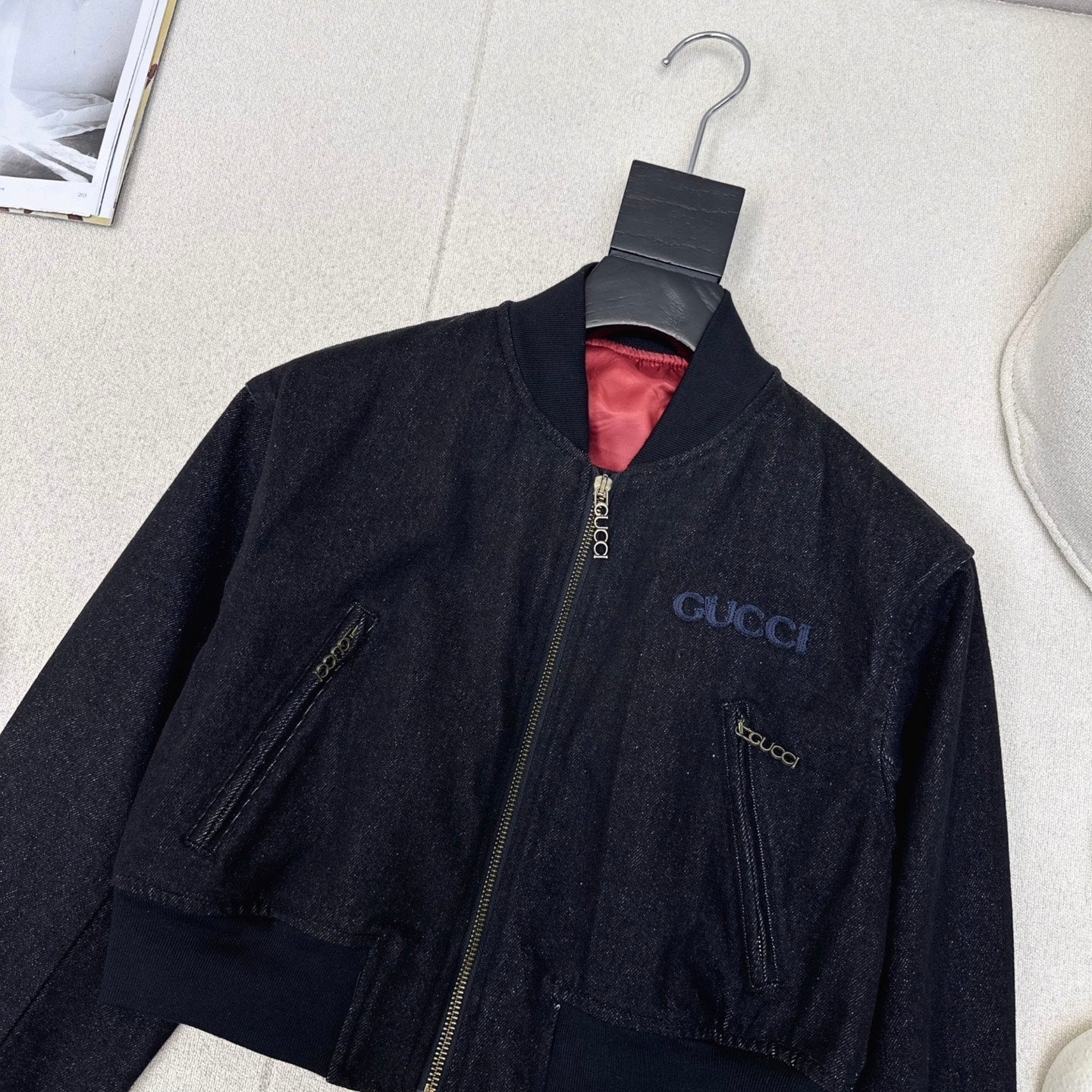 Gucci 25 Short Stand-up Collar Jacket Dark Blue Cotton 596441