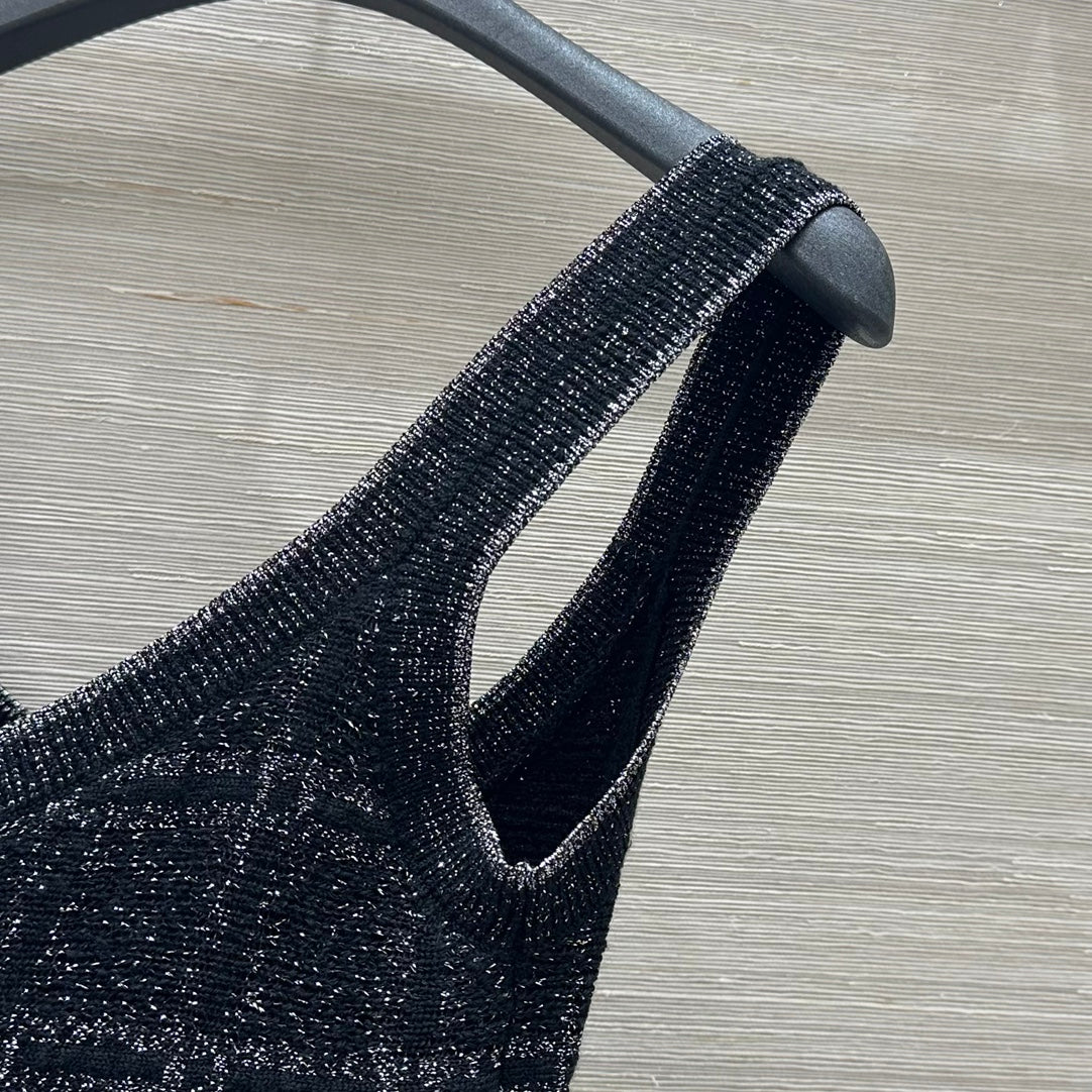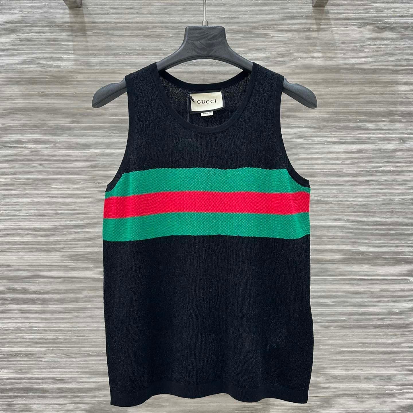 Gucci 25 Embroidered Jacquard Mesh Vest Top Black Tencel
