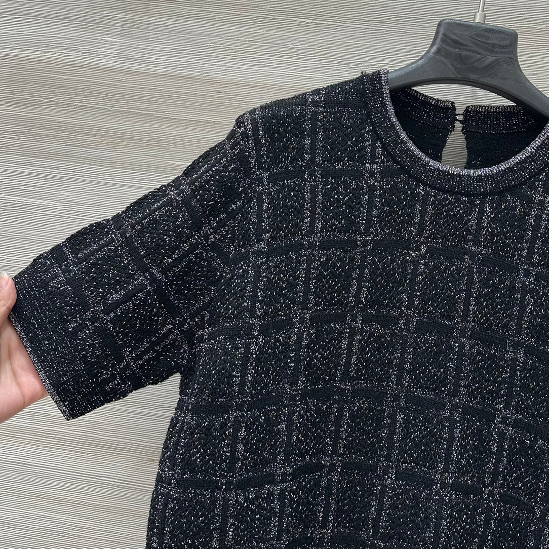 Gucci 25 Mesh Short-sleeved Top Black Tencel