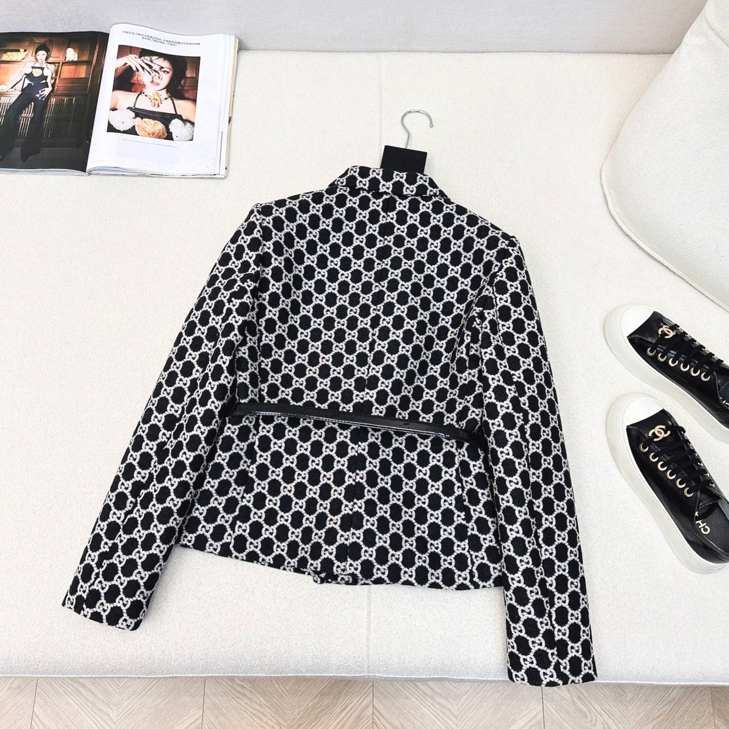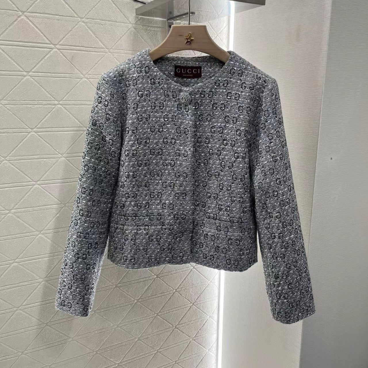 Gucci GG Letter Jacquard Woven Jacket Light Brown Polyester Fiber