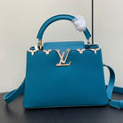 CAPUCINES BB 27 BLUE TAURILLON GOLD HARDWARE