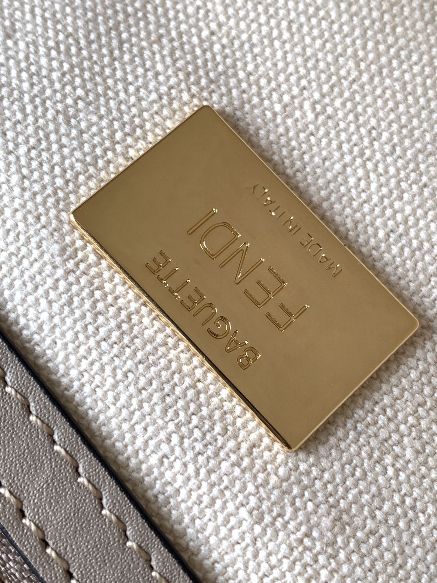 Fend Baguette White Brown and Multicolour Canvas Bag 27 with FF Embroidery Ghw