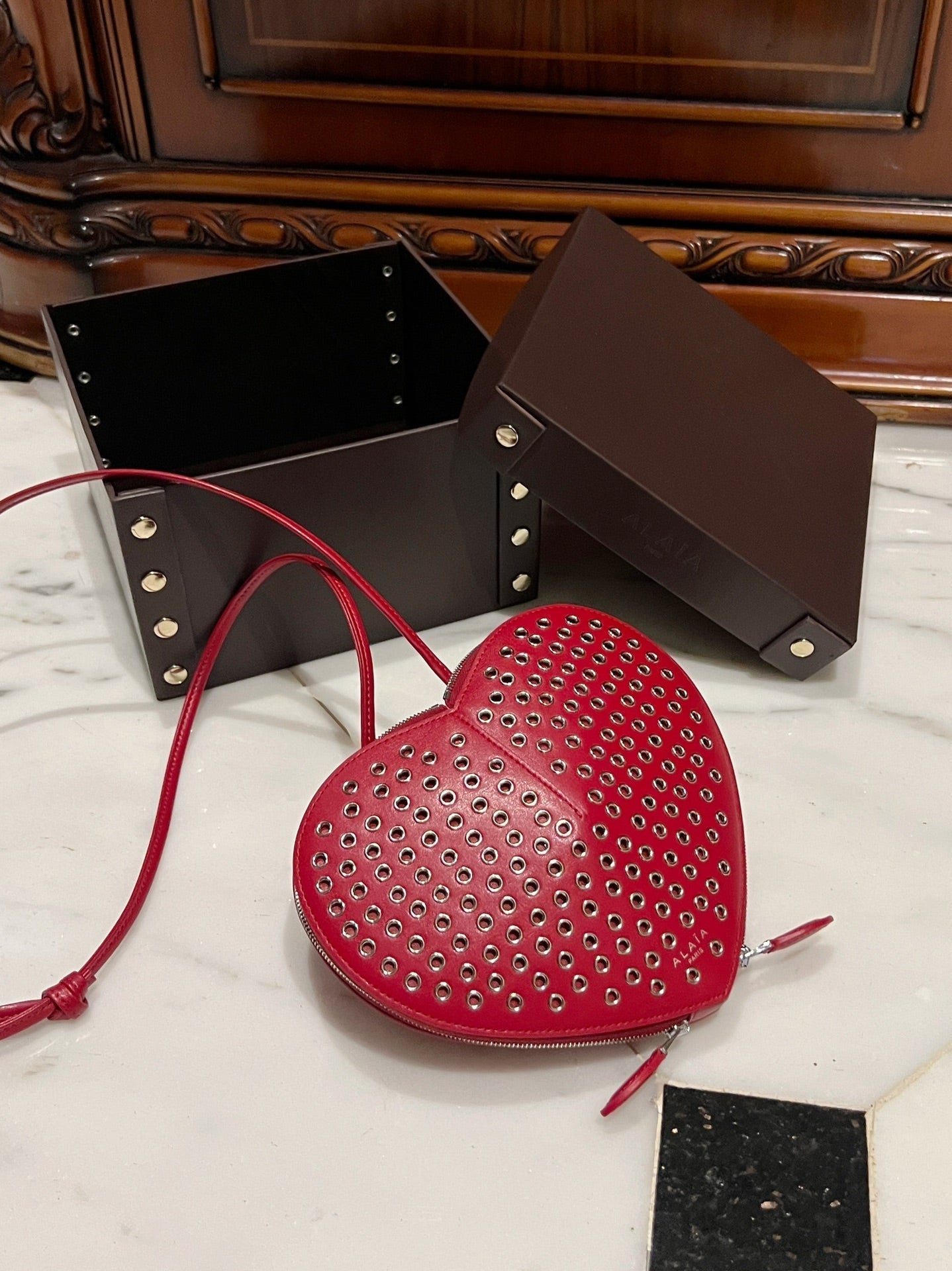 Le Coeur 21cm Red Metal Rivet Calfskin Shouder 243049