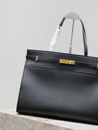 MANHATTAN SHOPPING BAG 40 IN BLACK SMOOTH LAMBSKIN GOLD BUCKLE
