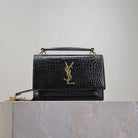 SUNSET SMALL BAG 19 IN BLACK CROCODILE-EMBOSSED CALFSKIN COPPER HARDWARE